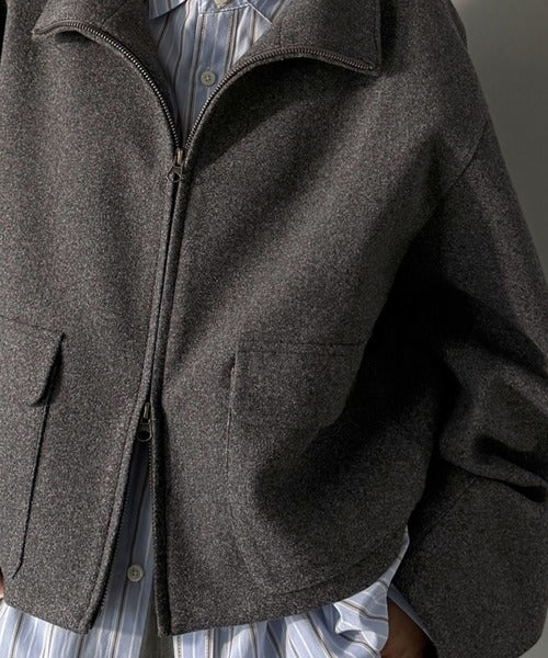 上質なメルトン素材を使用したショート丈ダブルZIPブルゾン。