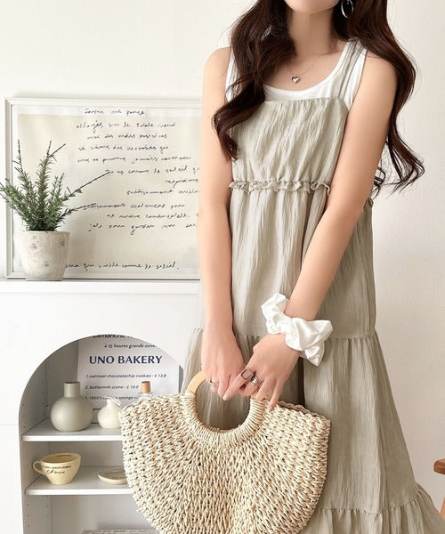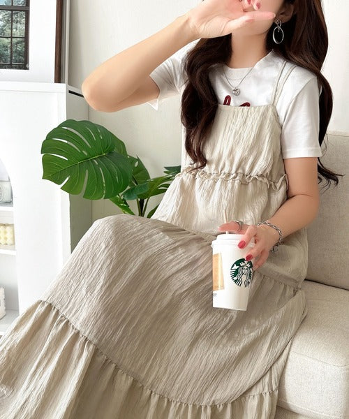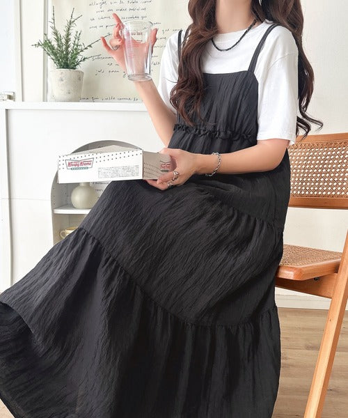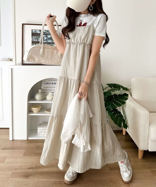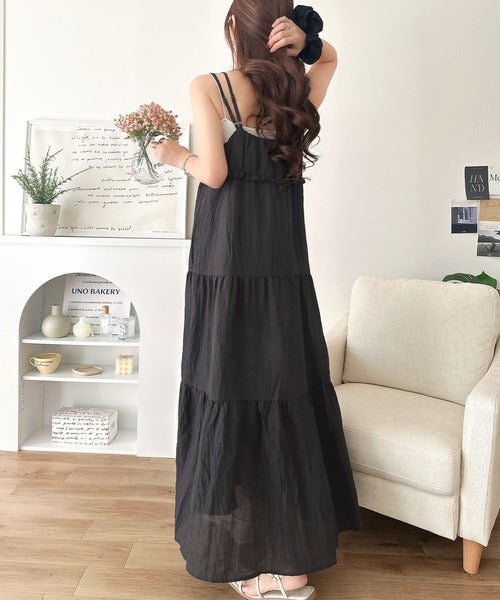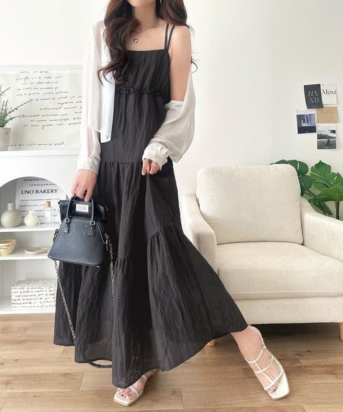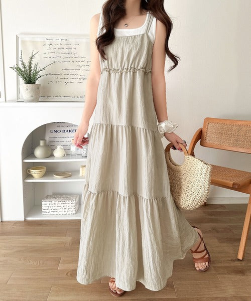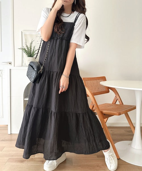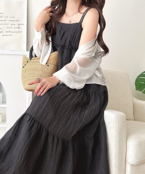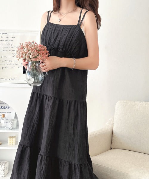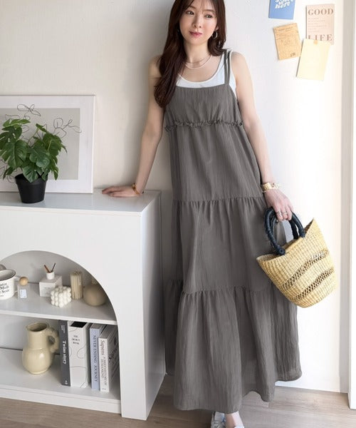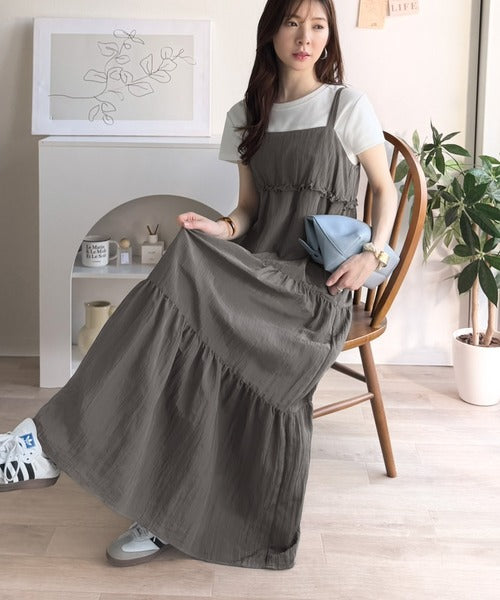 軽やかに揺れる、大人レディ。楊柳ワッシャーフリルティアードロングワンピース ce1265075