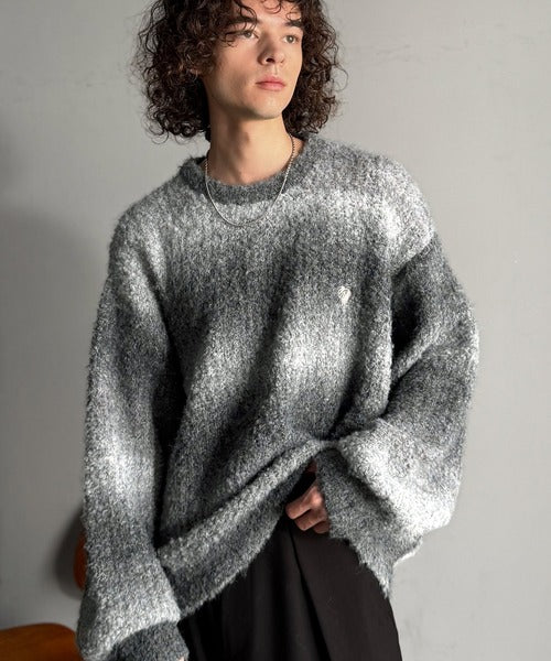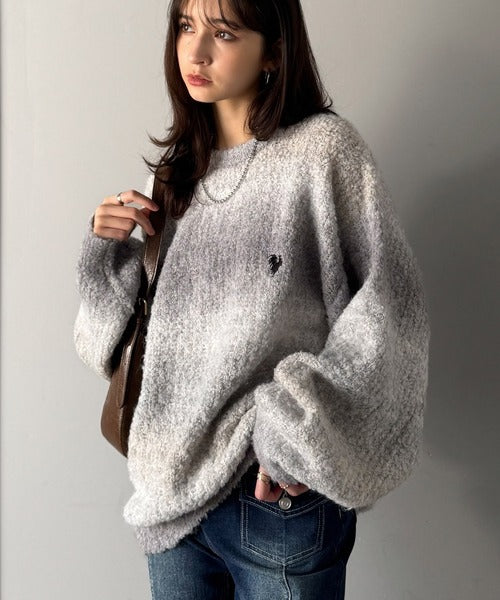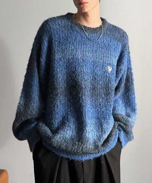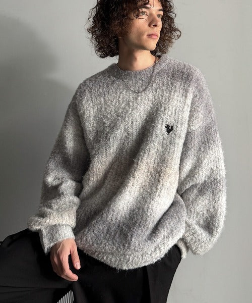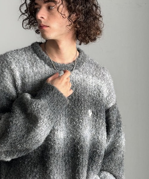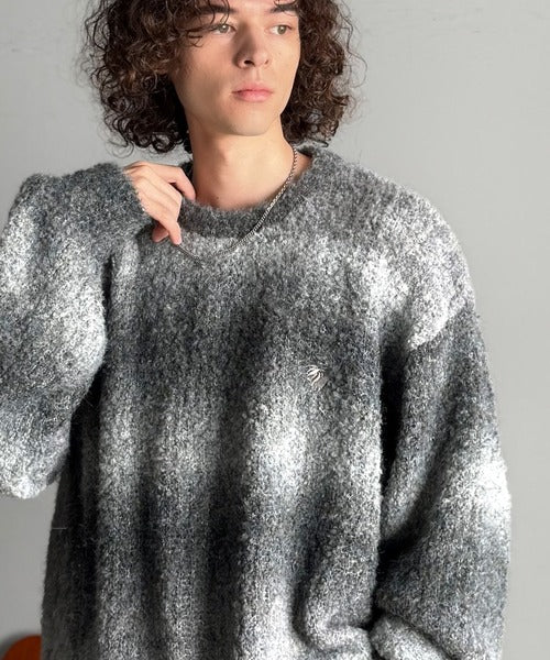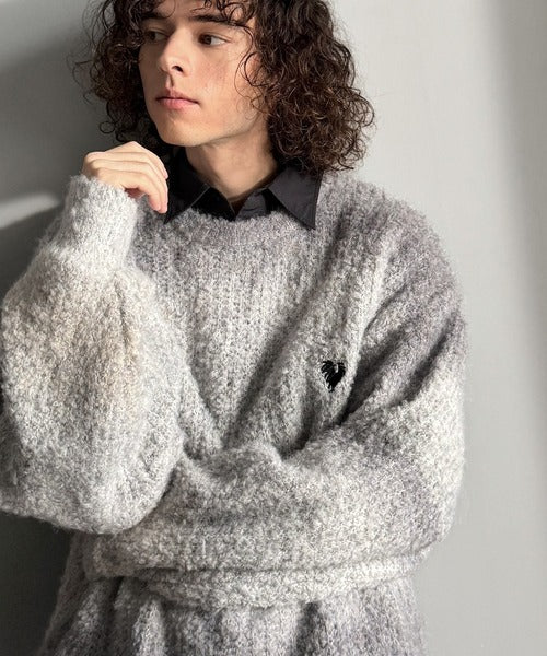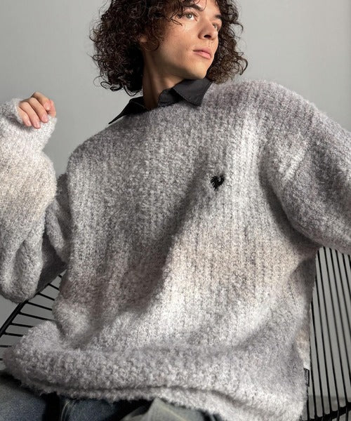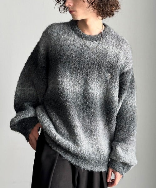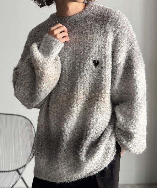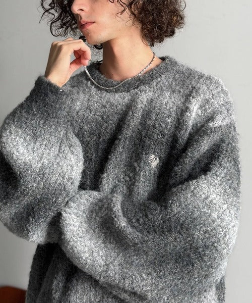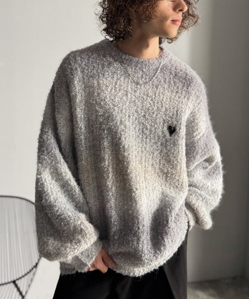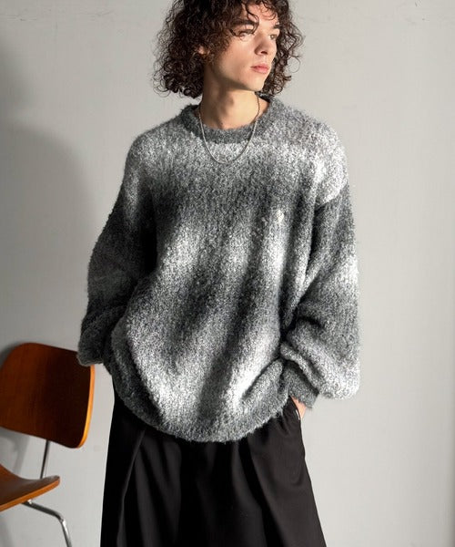 【Classical Origin】「質感で魅せる。」Gradient Boucle Knit Crew Neck Sweater/ブークレー素材グラデ―ションクルーネックセーター co0780013