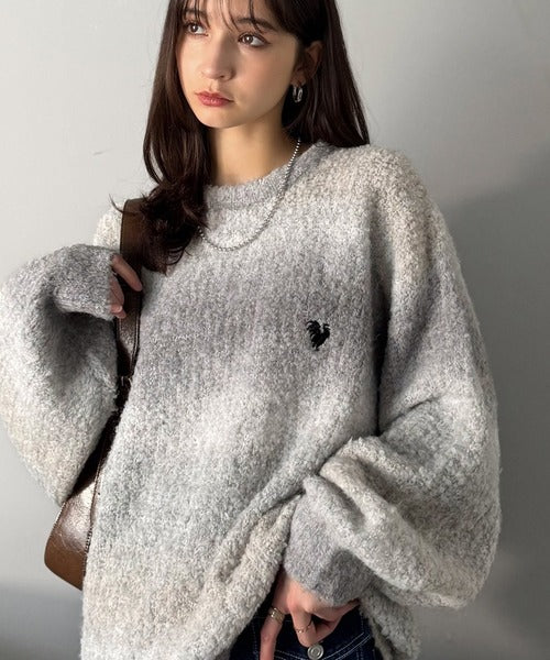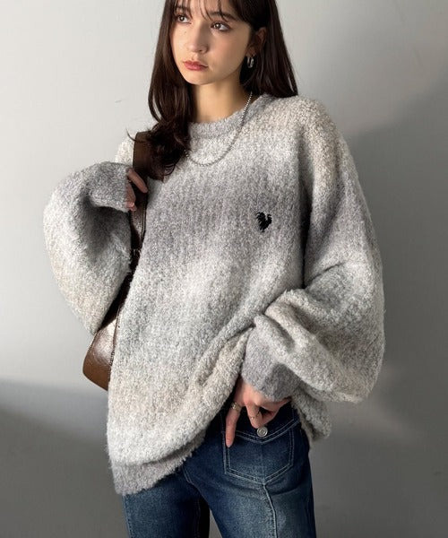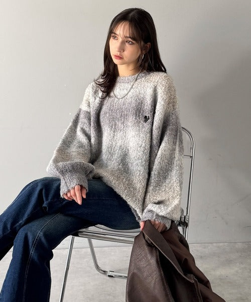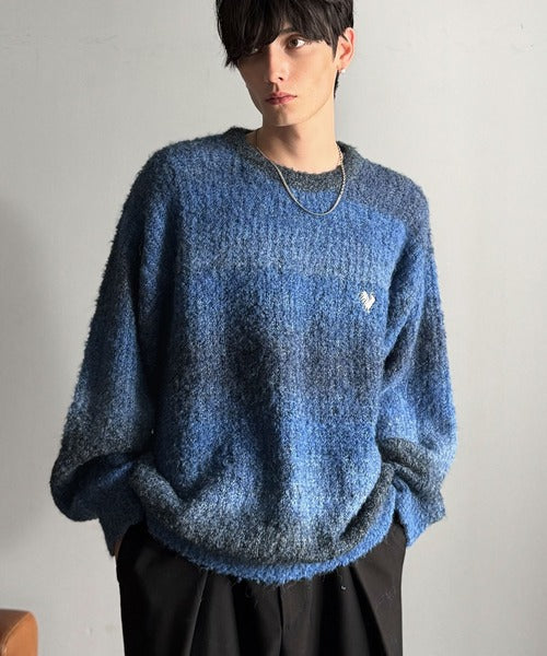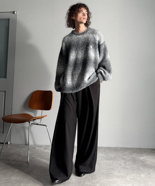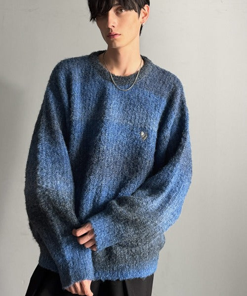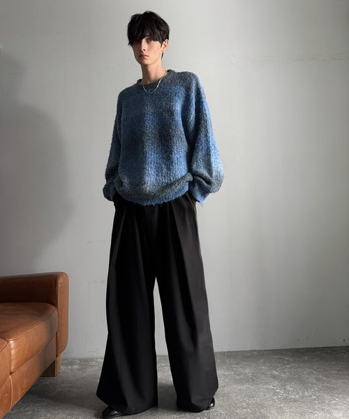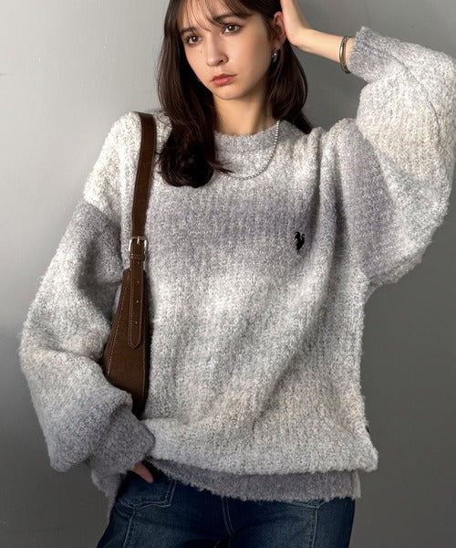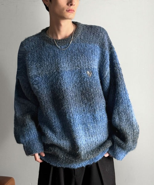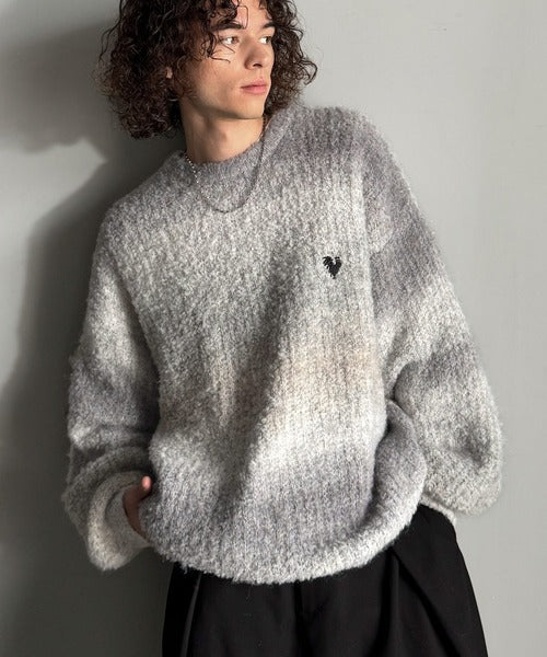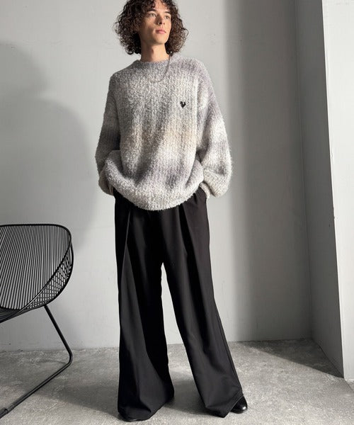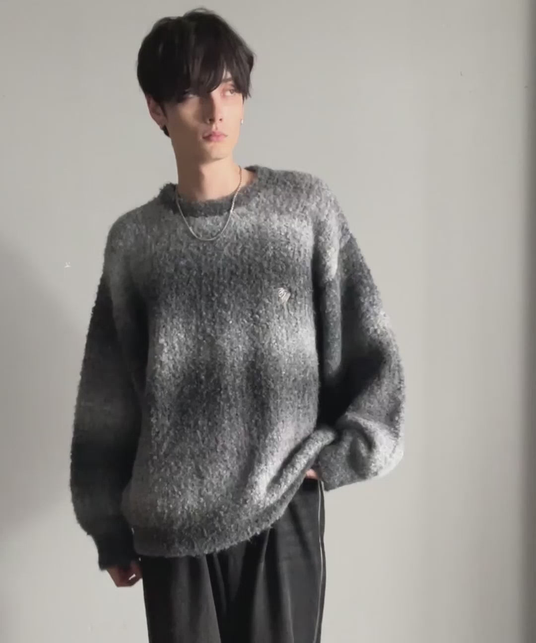 【Classical Origin】「質感で魅せる。」Gradient Boucle Knit Crew Neck Sweater/ブークレー素材グラデ―ションクルーネックセーター co0780013