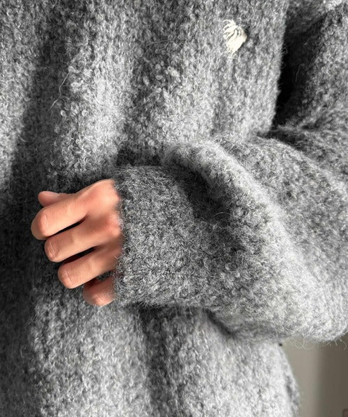 表情豊かなブークレー素材を使用したクルーネックセーター。