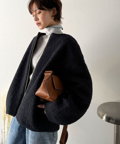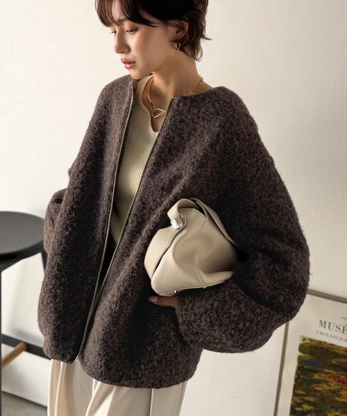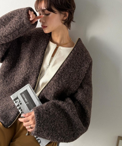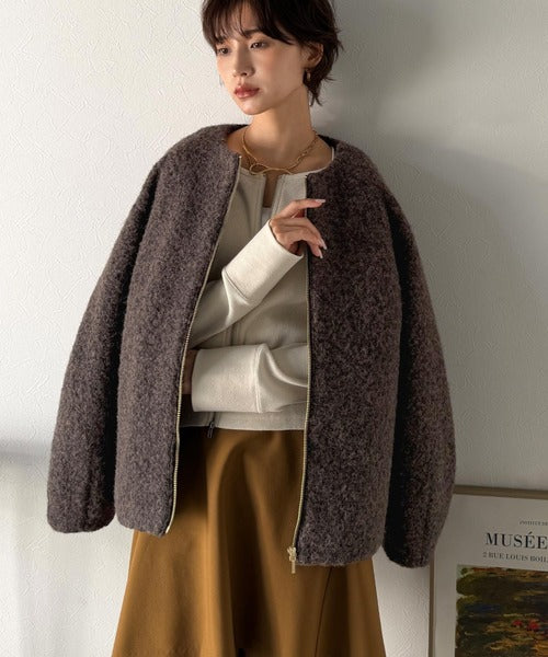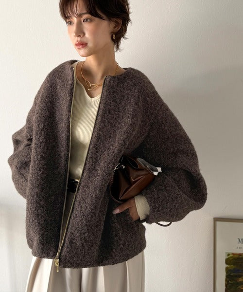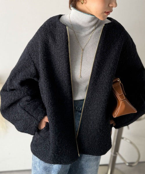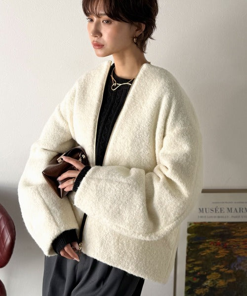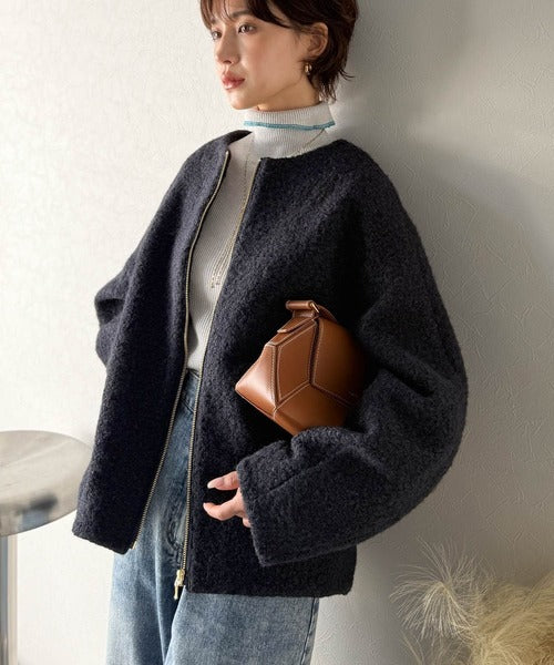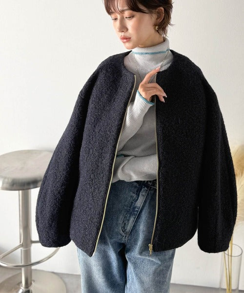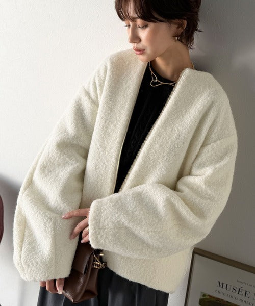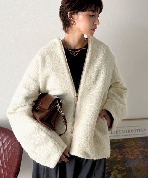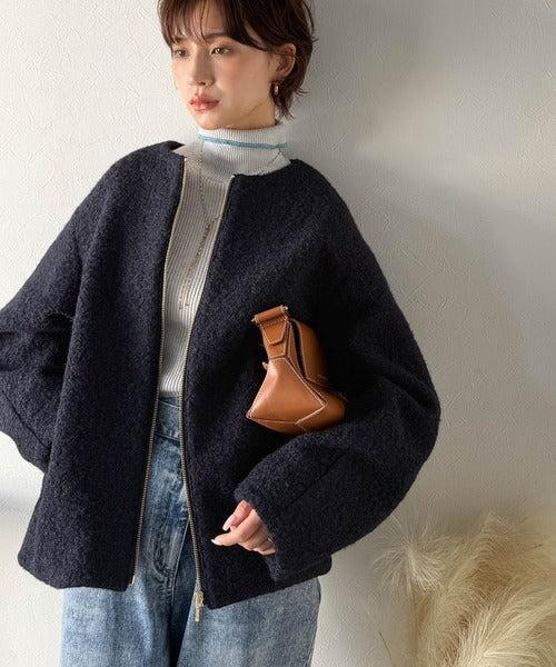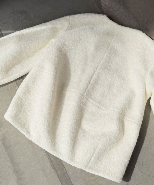 【Classical Evon】上品さと抜け感を兼ね備えた、大人のためのアウター。軽やかブークレノーカラージャケット ev1110138