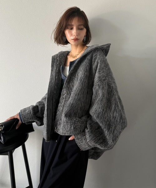 柔らかな毛足のある素材が、やさしく上品な印象を引き立てながら、しっかりとした暖かさも兼ね備えた、この秋冬にぴったりの1枚。