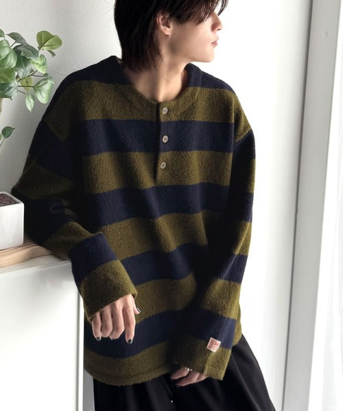《JaVaジャバコラボ》クラシカル×モダンな一枚。ラガーデザインリラックスニット(長袖) jm1020270