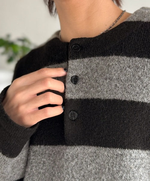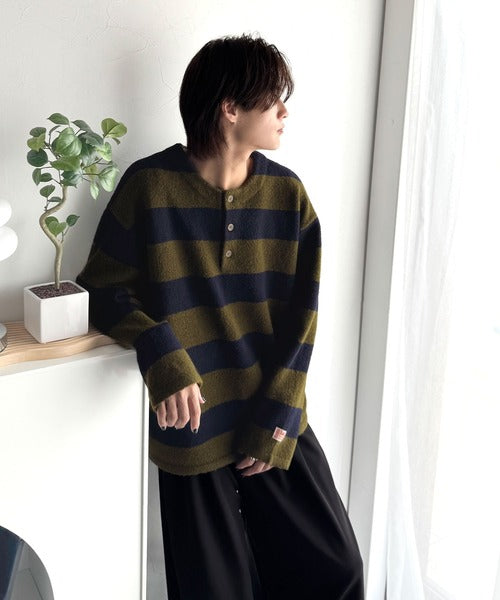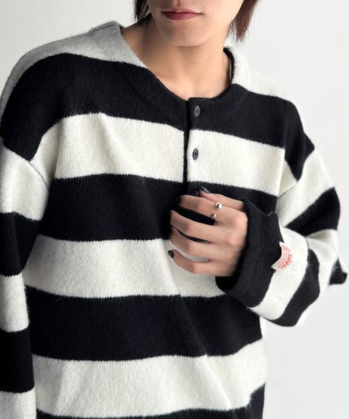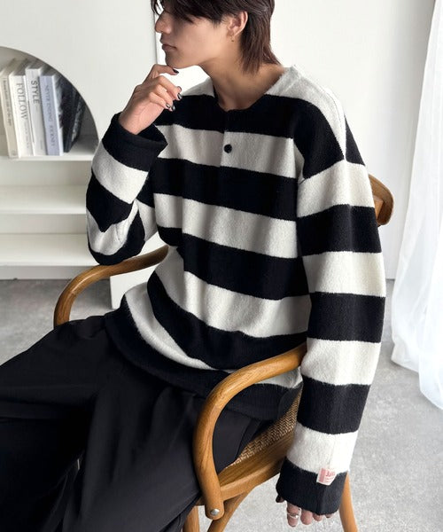 カジュアルな印象のラガーデザインを、もちっとしたニット素材でアレンジ。