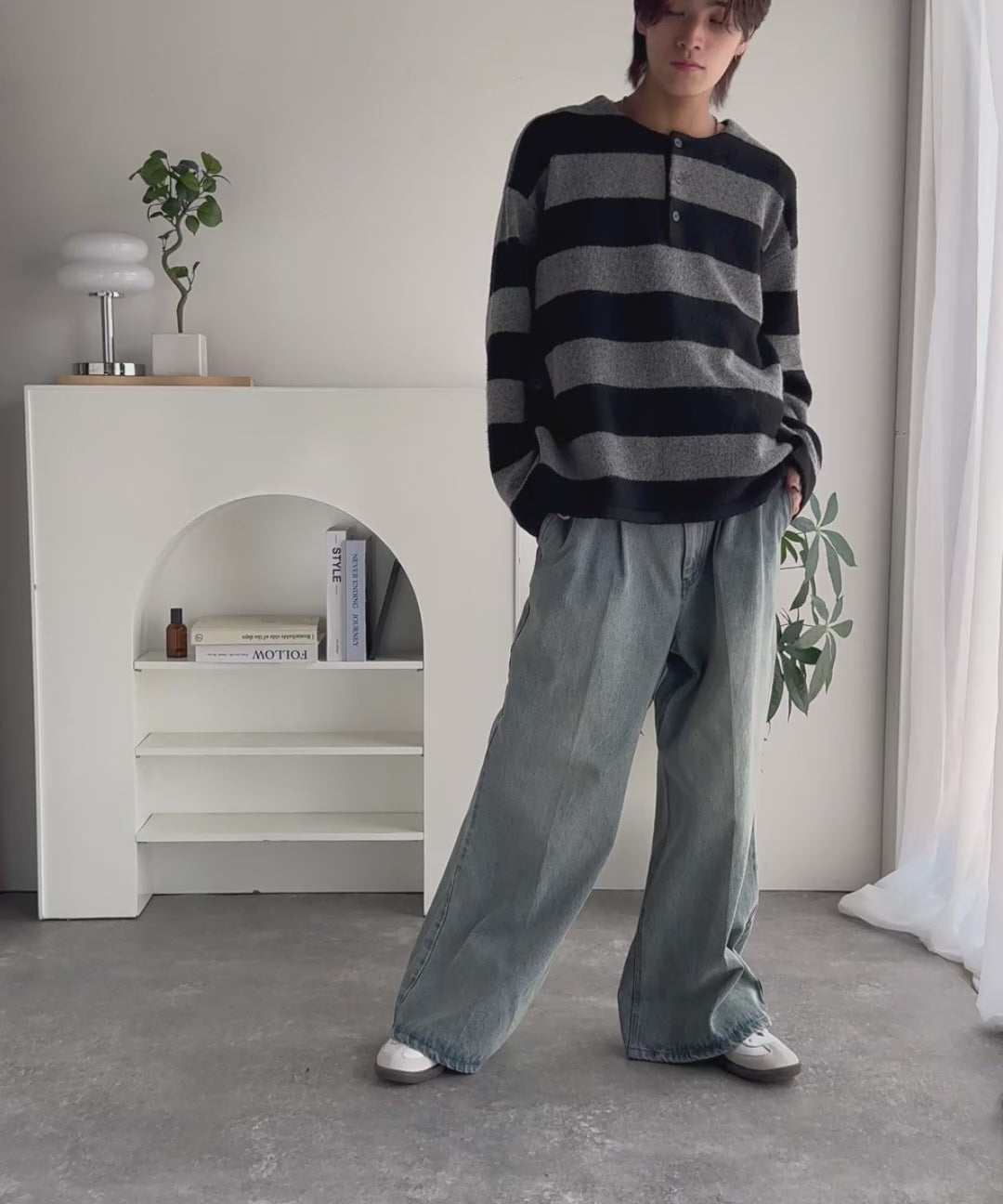 ボーダーの太さや配色にこだわり、程よくトラッドなムードを演出します。