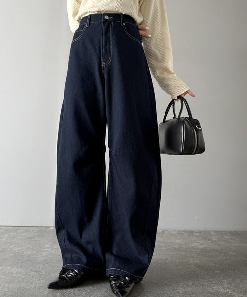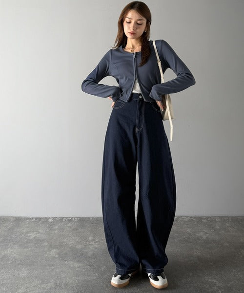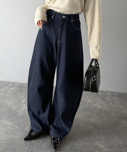 《JaVaジャバコラボ》しなやか曲線でスタイル盛れ。美脚見せカーブパンツ(ワイド) jv0909014