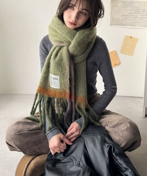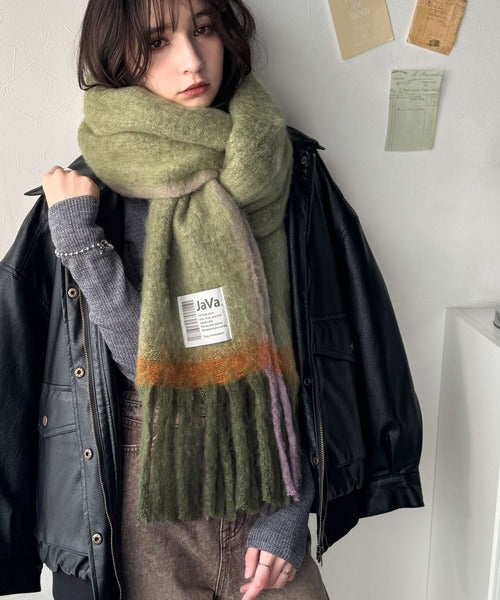 《JaVaジャバコラボ》ふんわりあったか。配色ボリュームマフラー jv1240101