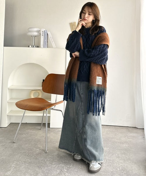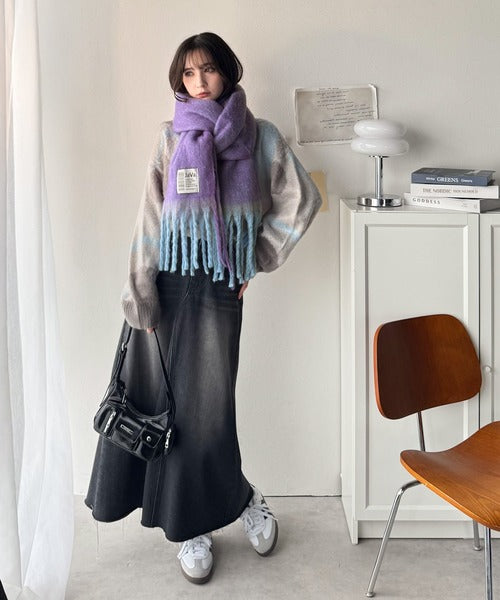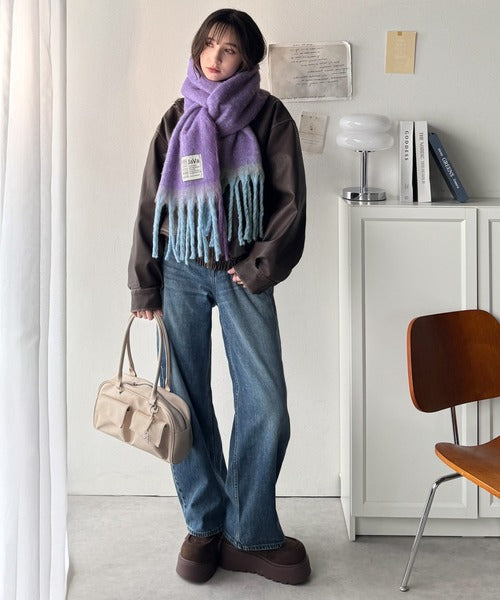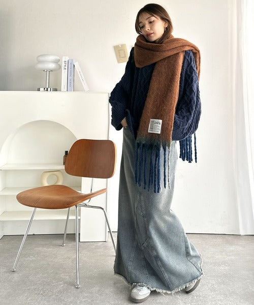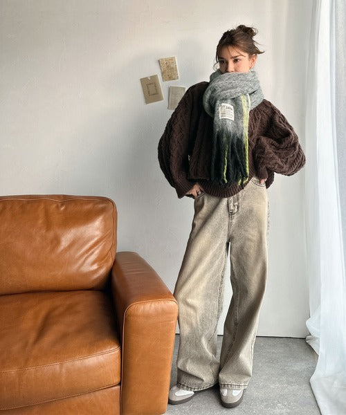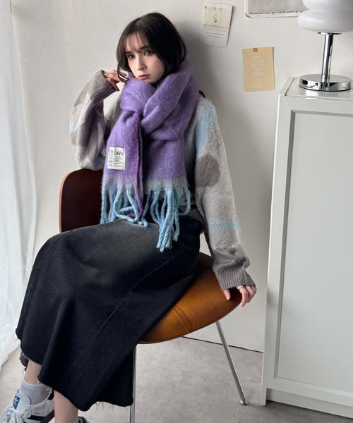 ふんわり暖か!スタイリッシュな配色ボリュームマフラー。