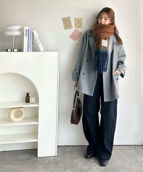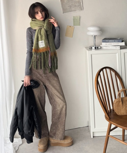 マフラーの巻き方次第で配色が映えるのも可愛いポイント。
