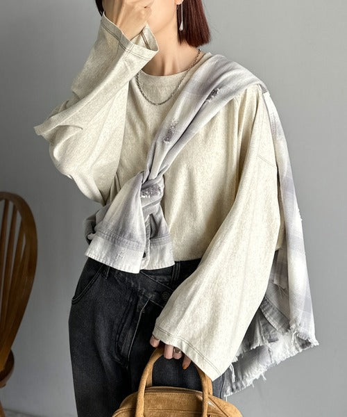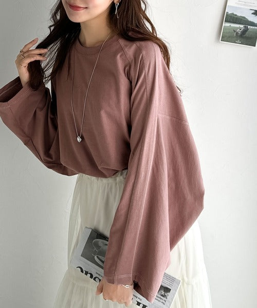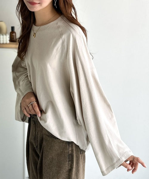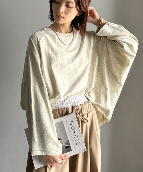 《JaVaジャバコラボ》ゆるっと大人カジュアル。綿100%ドルマンスリーブカットロンTEE(長袖) jv1260489