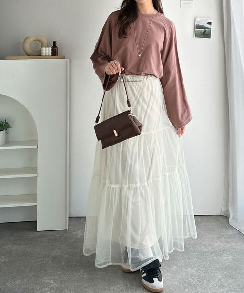 チュールスカートやキャミワンピースを合わせた甘めスタイルまで