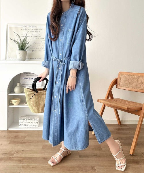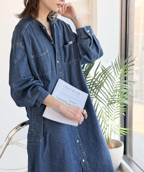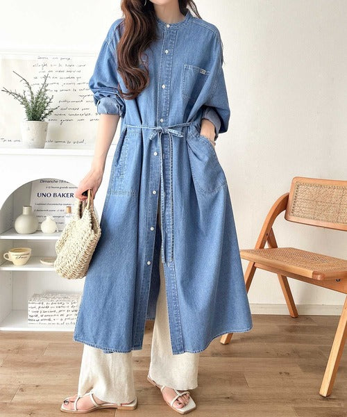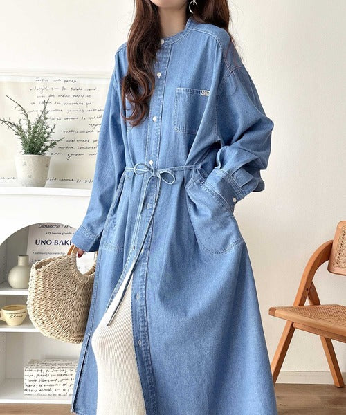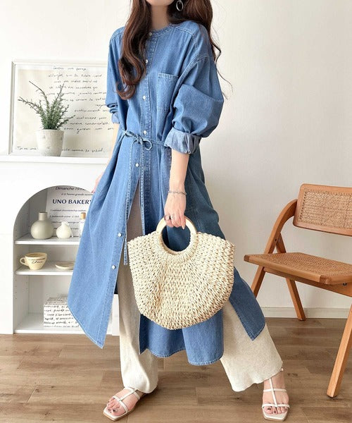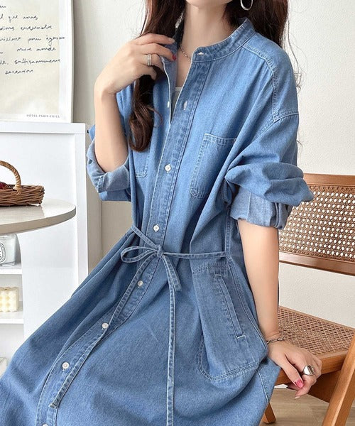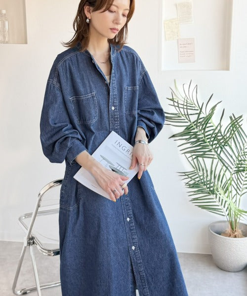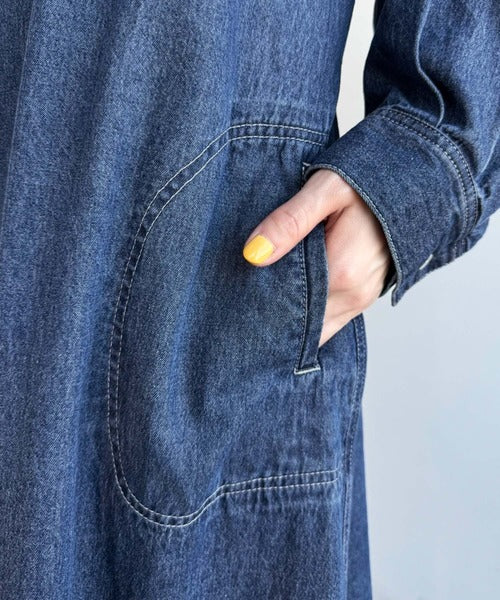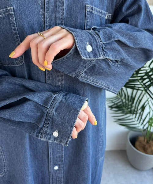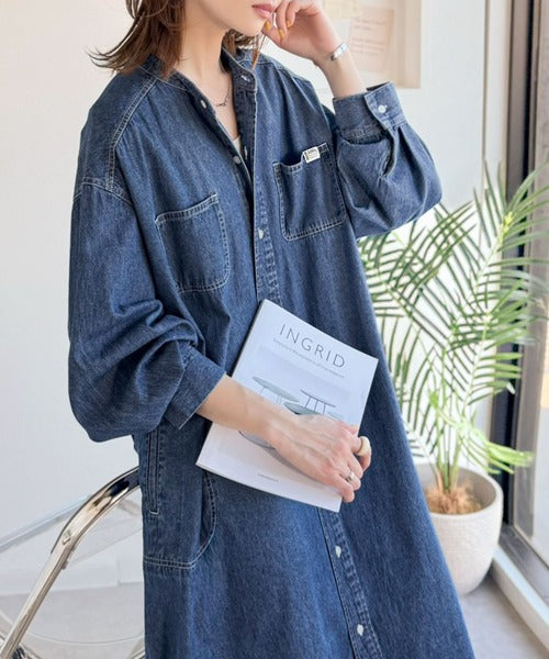 程よいハリと柔らかさを兼ね備えた綿100%のデニムシャツワンピース。