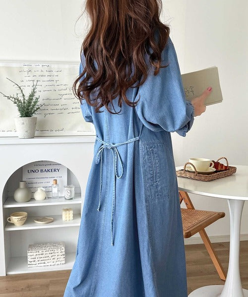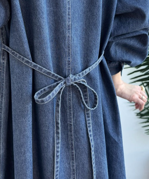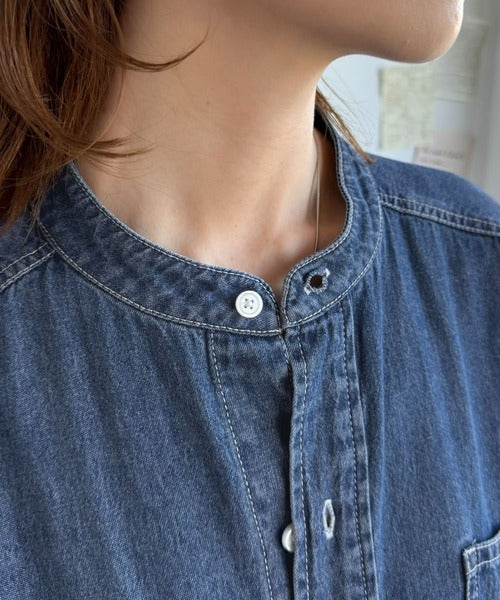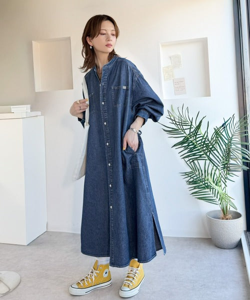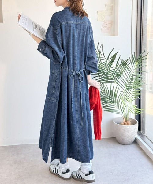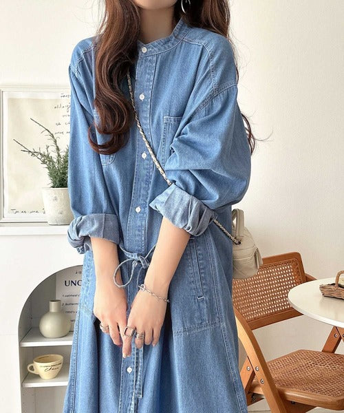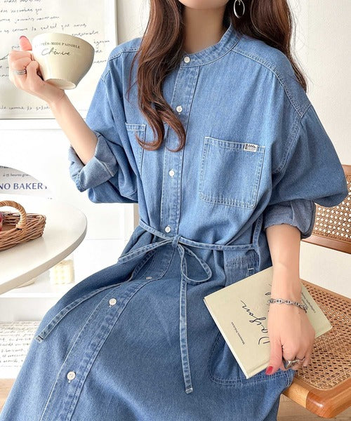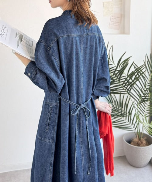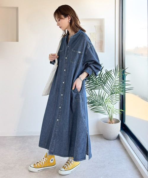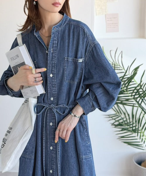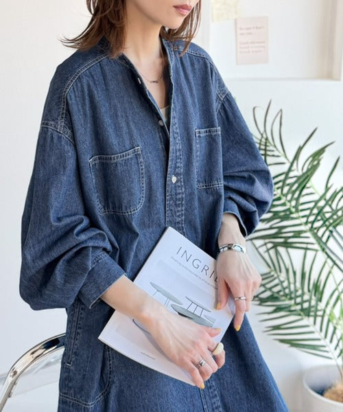 程よいハリと柔らかさを兼ね備えた綿100%のデニムシャツワンピース。
