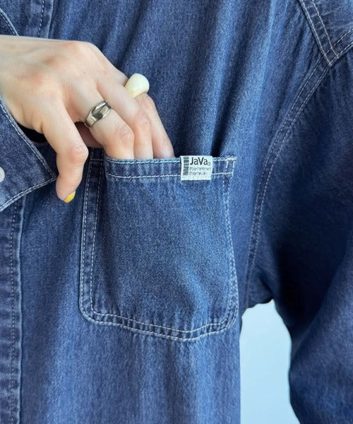 《JaVaジャバコラボ》頑張らないのに、視線をさらう。コットン100%デニムシャツワンピース jv1265087