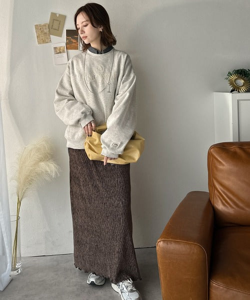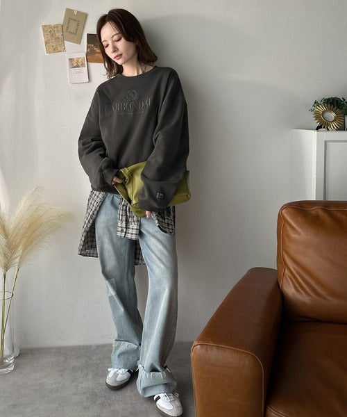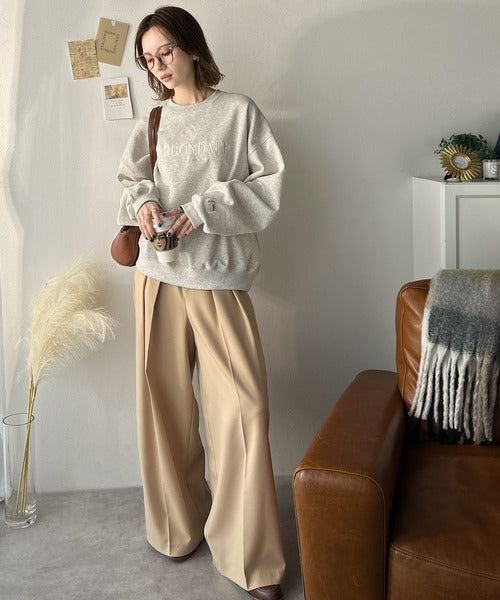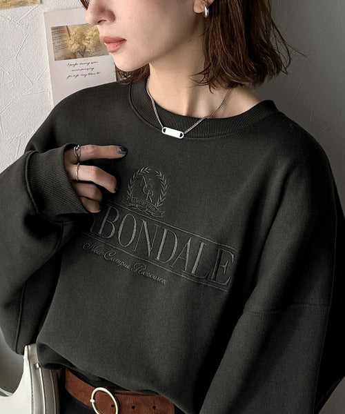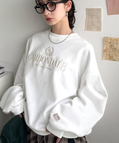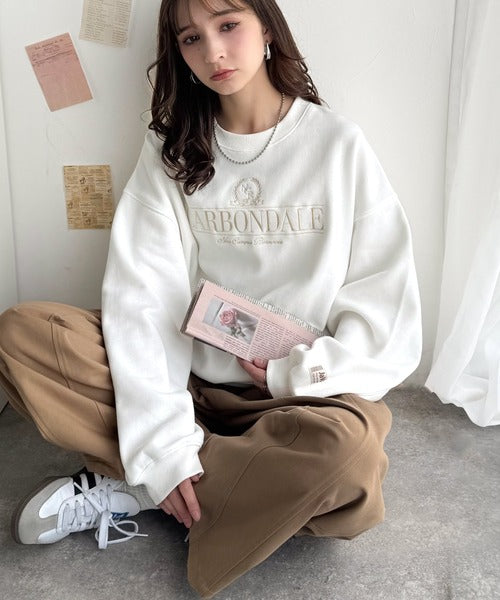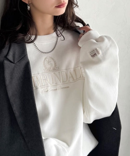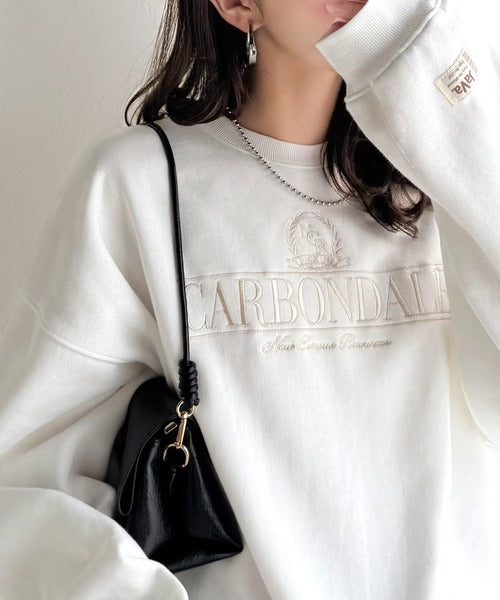 繊細な立体刺繍ロゴが印象的なカレッジスウェット。
