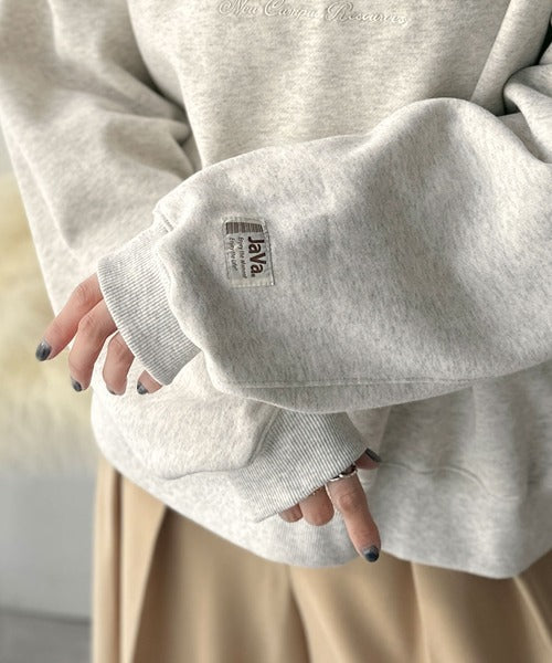 《JaVa ジャバコラボ》微配色刺繍の上品ロゴデザイン。刺繍カレッジロゴ裏起毛スウェット jv1330040