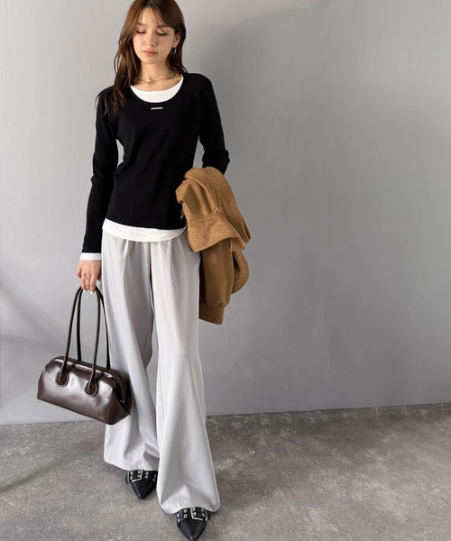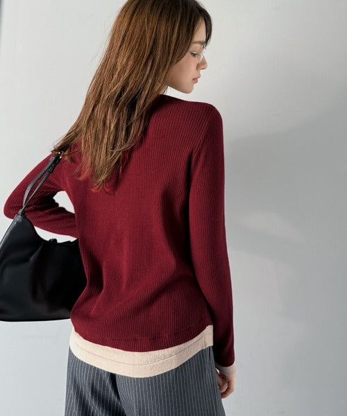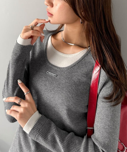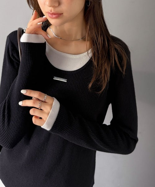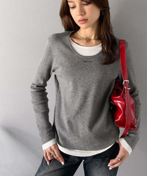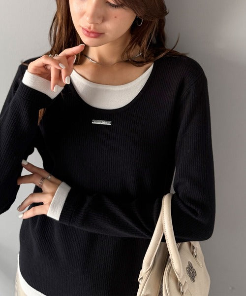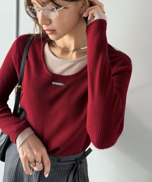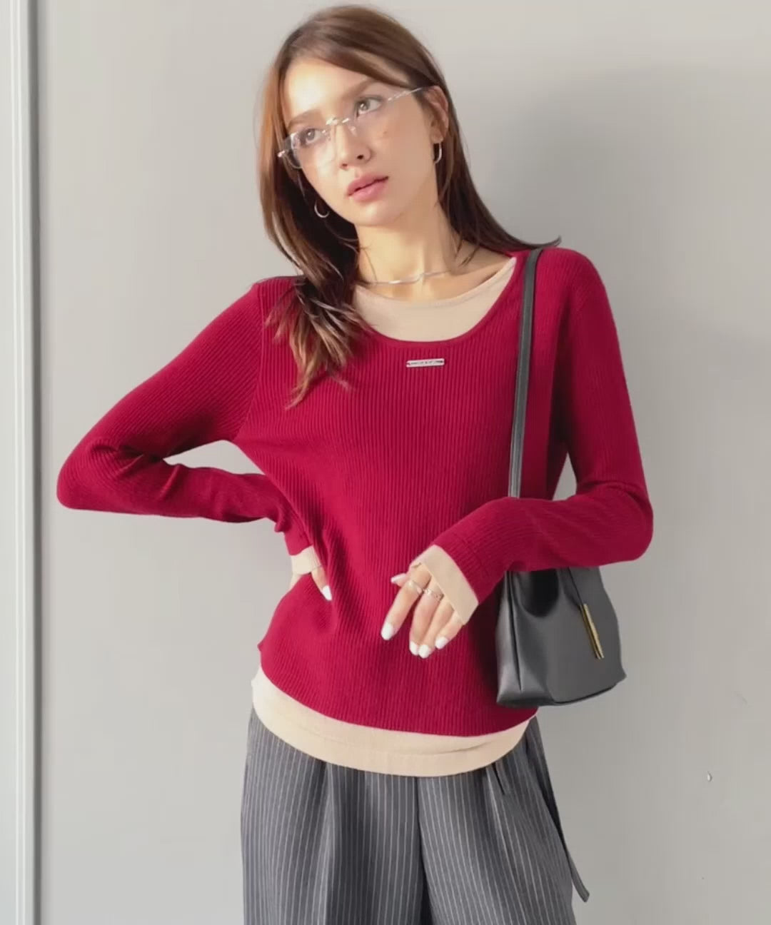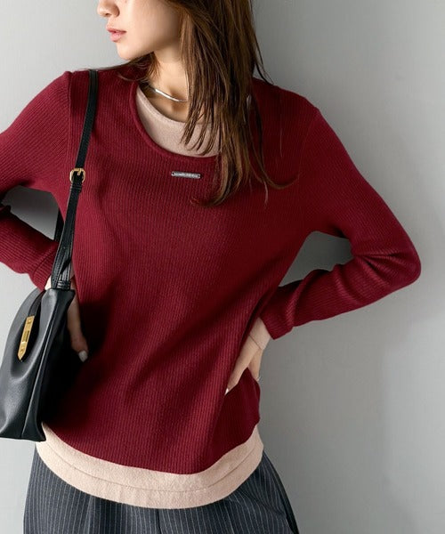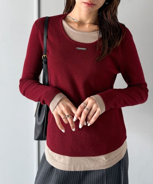 【mily bilet】1枚でおしゃれ上級者に♪プレート使いレイヤードニットプルオーバー(長袖) mi1029136