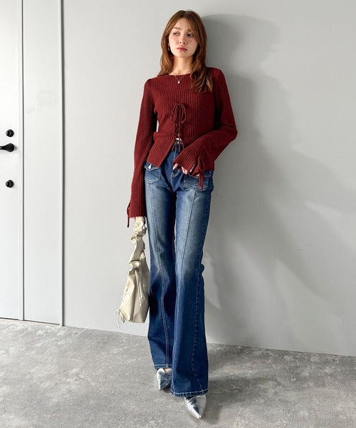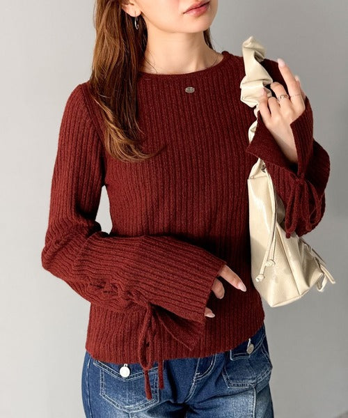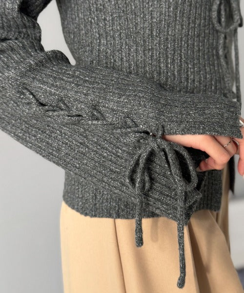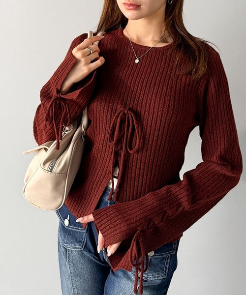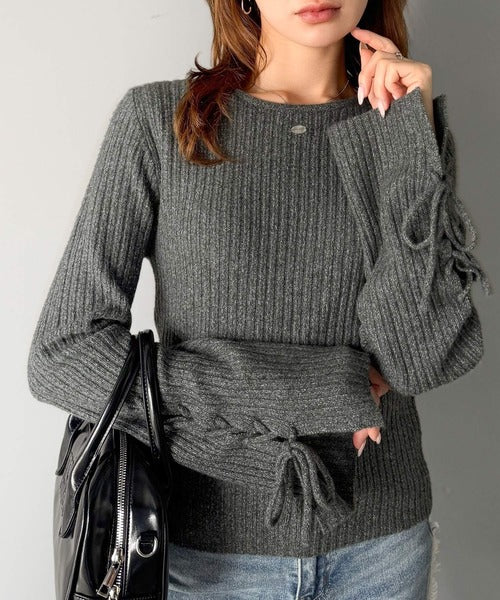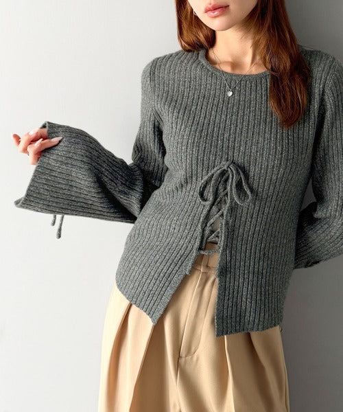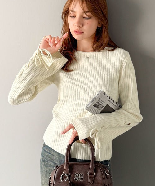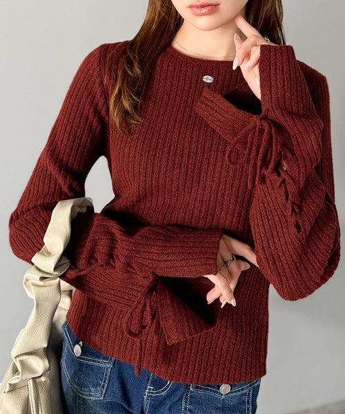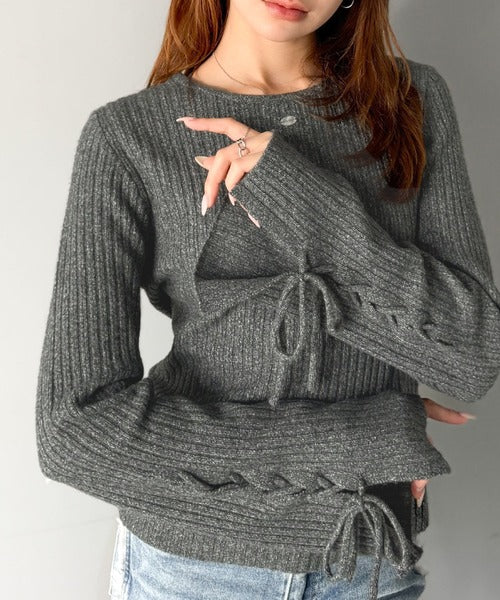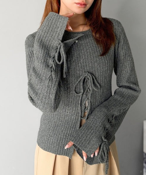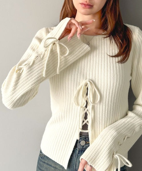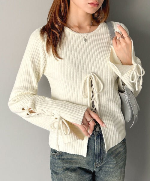【mily bilet】リボンのディテール映え!前後2wayレースアップデザインニットプルオーバー(長袖) mi1029142