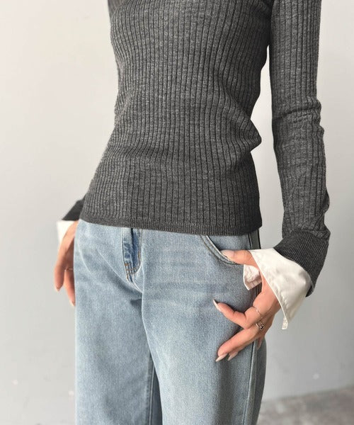 【mily bilet】1枚で完成♪重ね着風デザイン◎カシミアタッチ袖カフスレイヤード刺繍ニット mi1259018