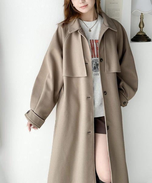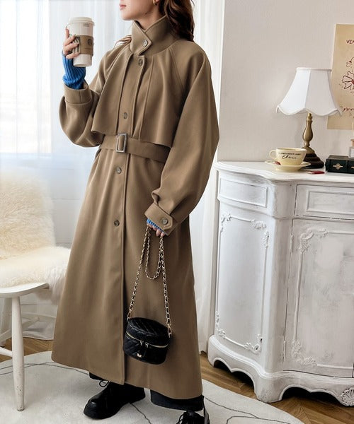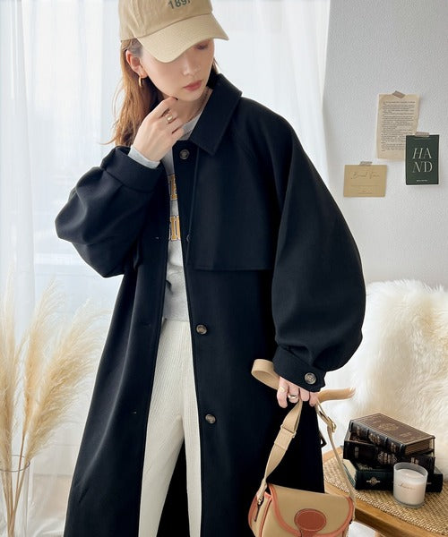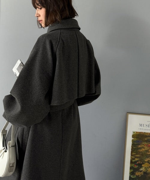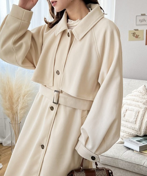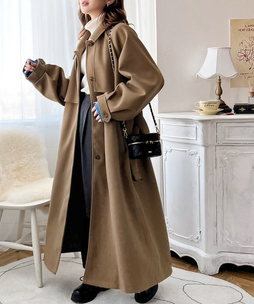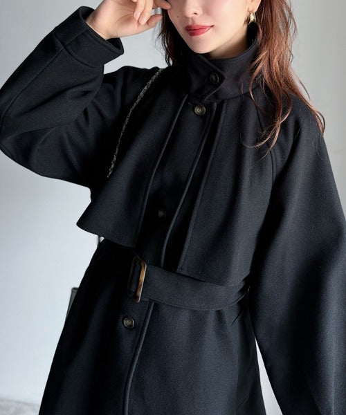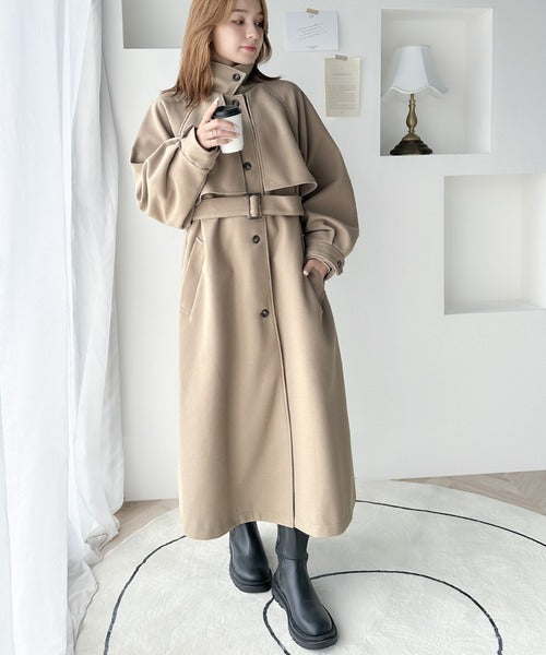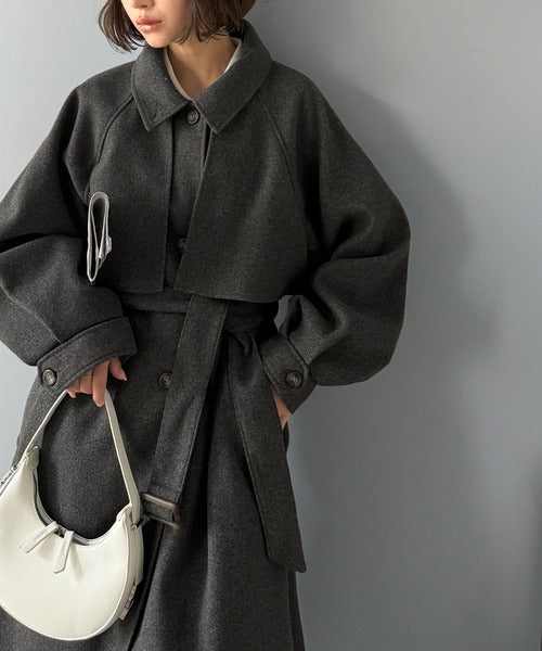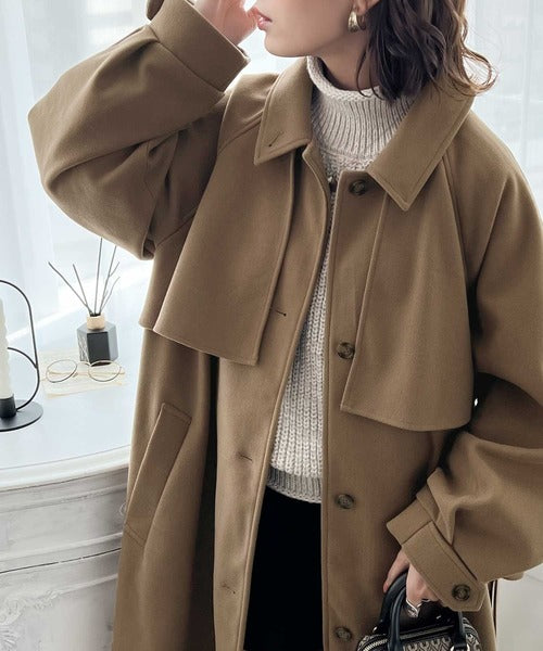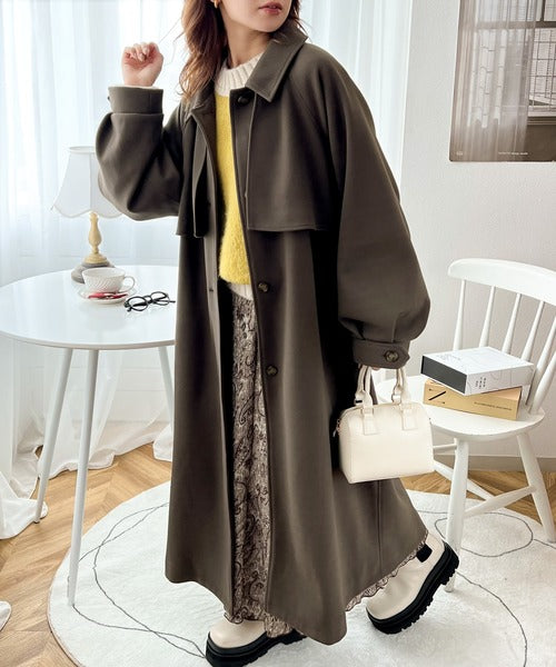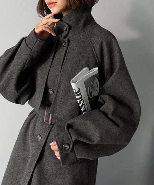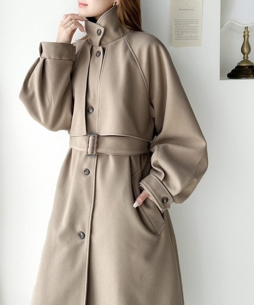 360度上品魅せ。2wayスタンドカラーボリュームスリーブニットモッサトレンチコート ce0420123