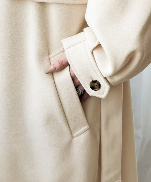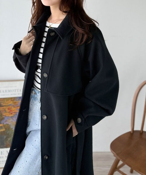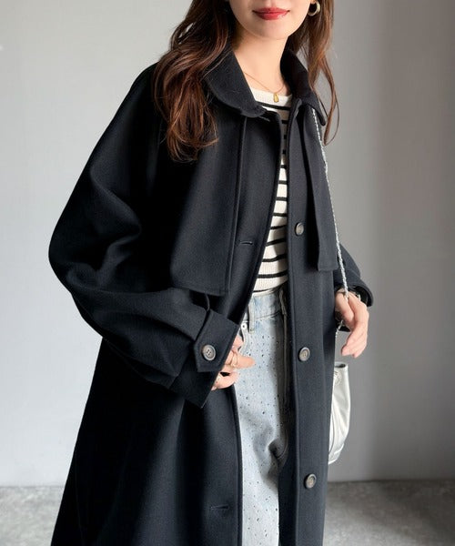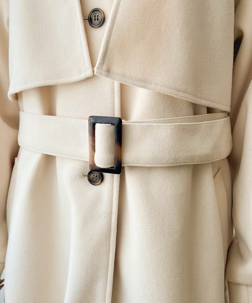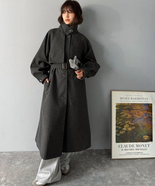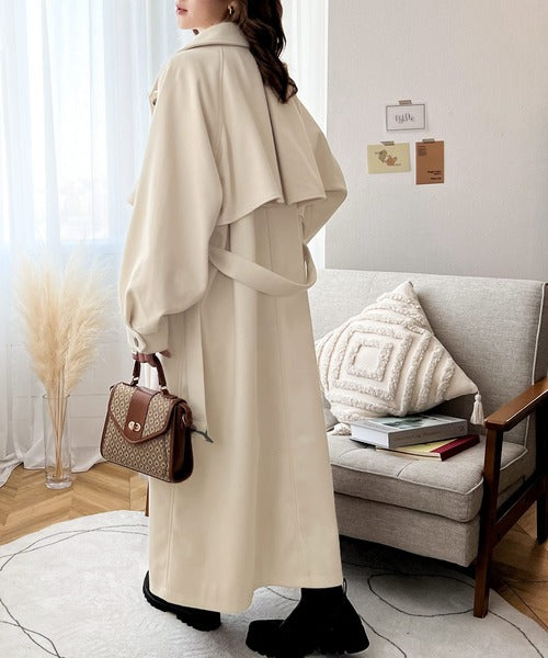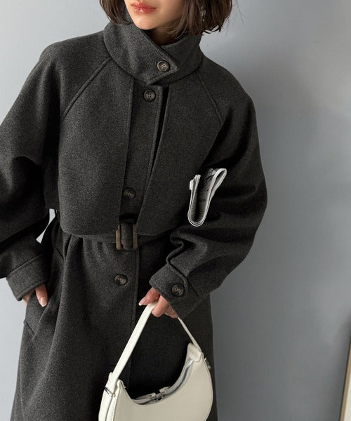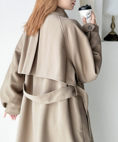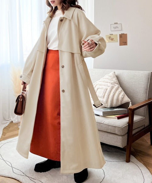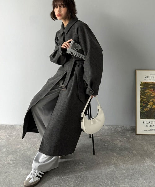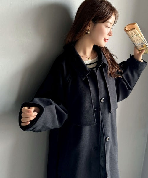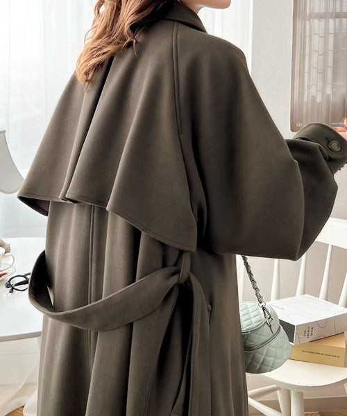 衿やベルトの着方によって表情が変わるマルチで上品な大人魅せアウター。