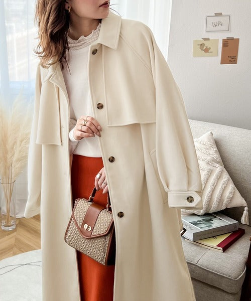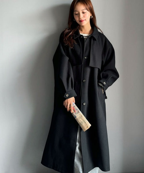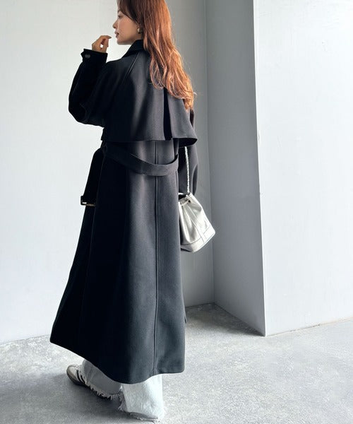 トレンチコートのクラシカルな特徴を取り入れた、