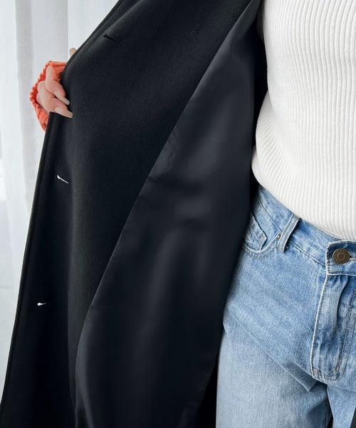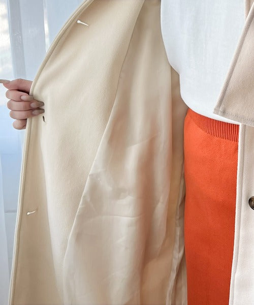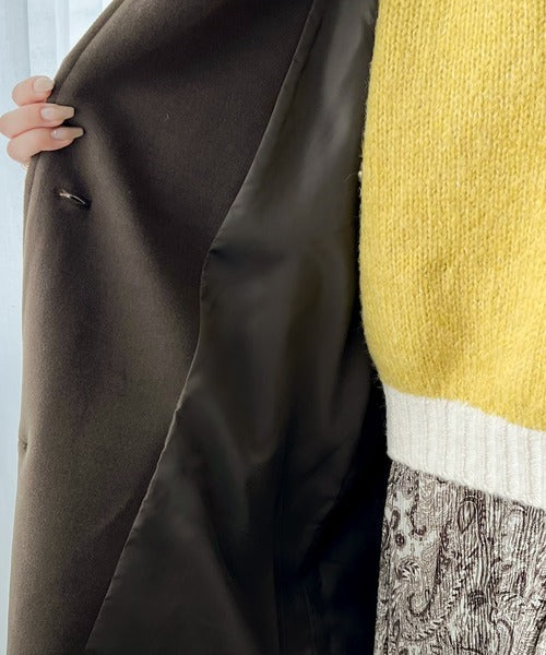 クラシカルな印象のスタンドカラーのニットモッサロングコート。