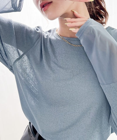 ワントーン異素材のシアートップス。