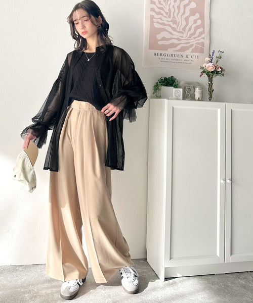 スタイリッシュなニットパンツやスラックスを合わせ、キレイめな印象に◎