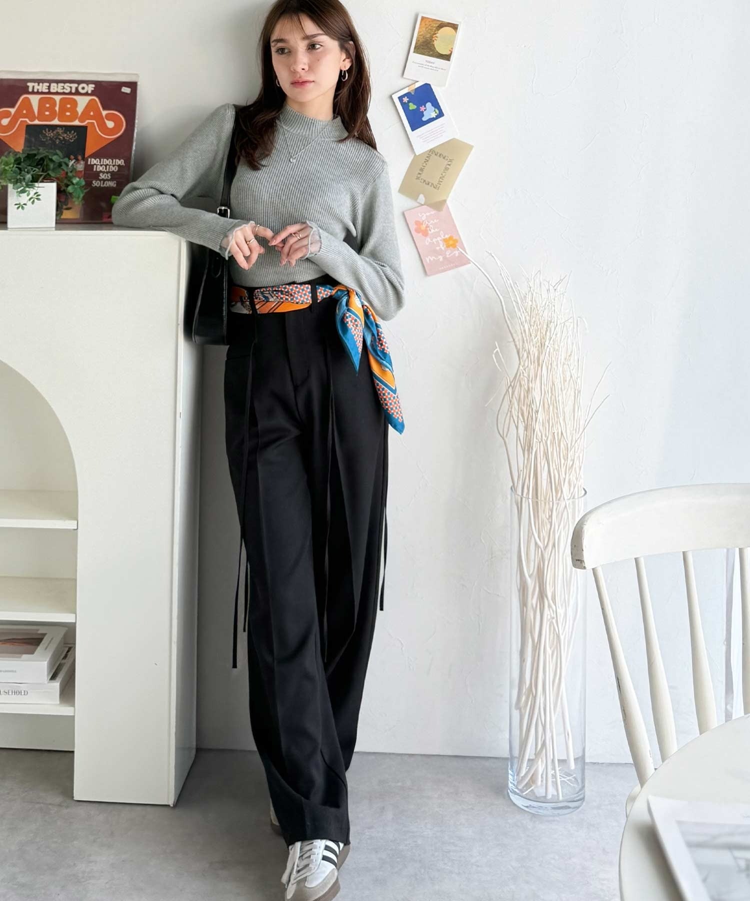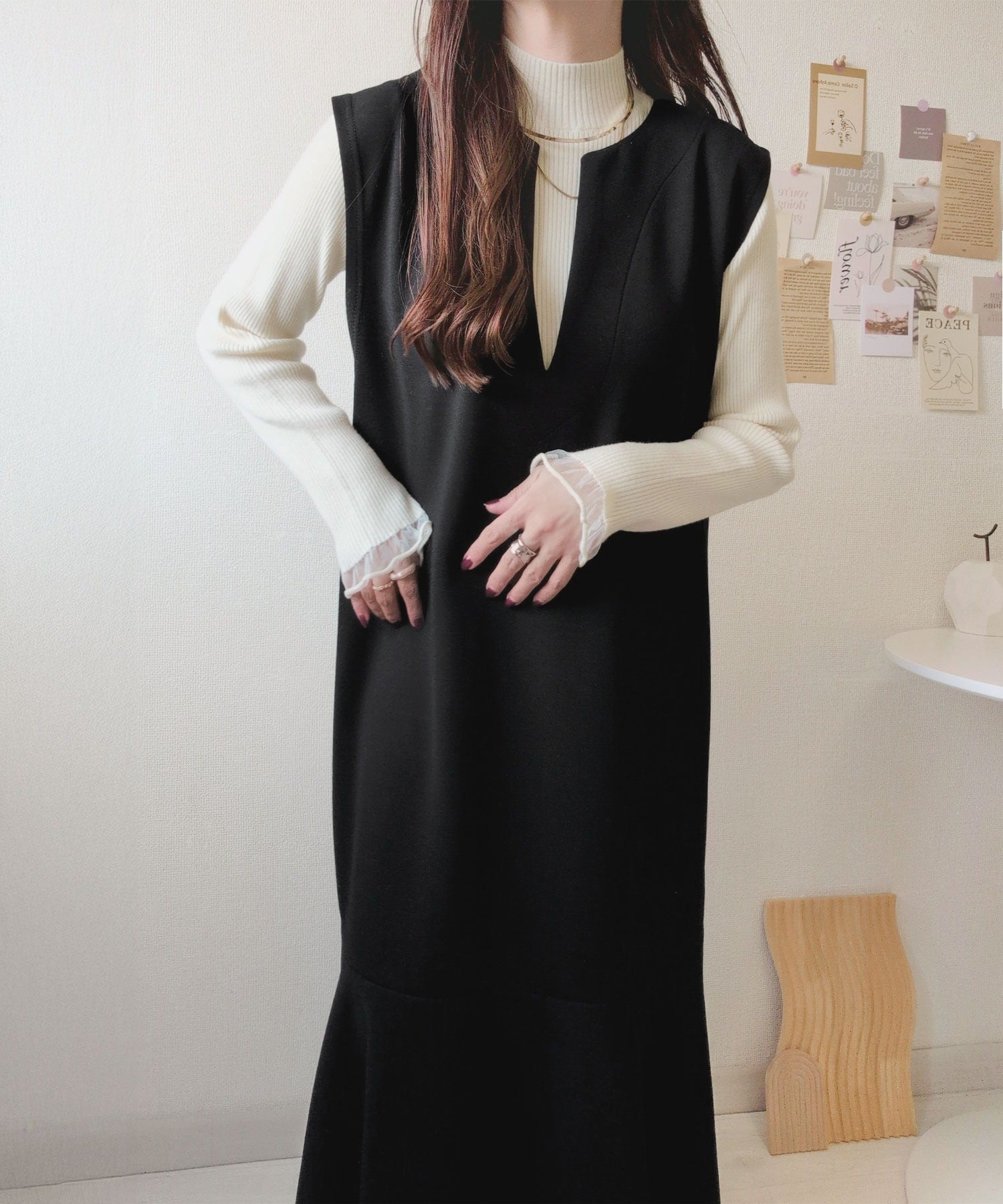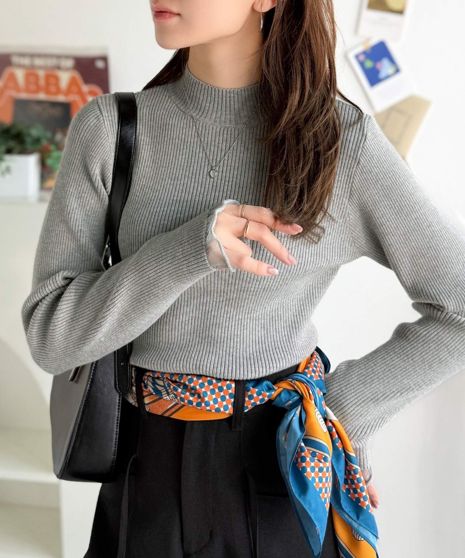 伸縮性のあるリブ編みで体にほどよくフィットし、すっきり見えするシルエット♪