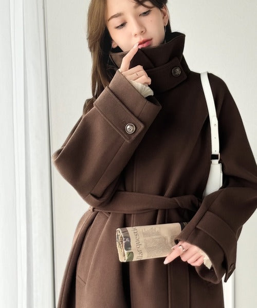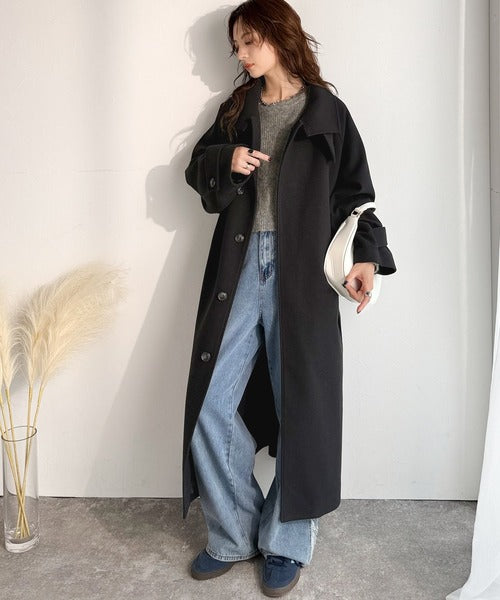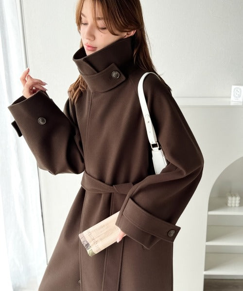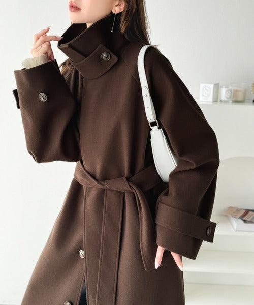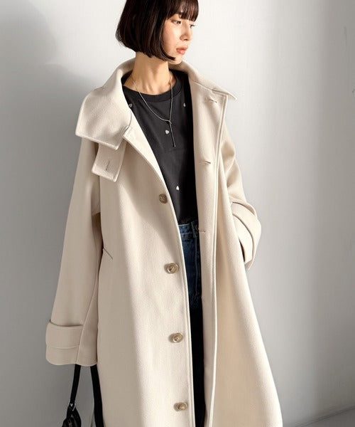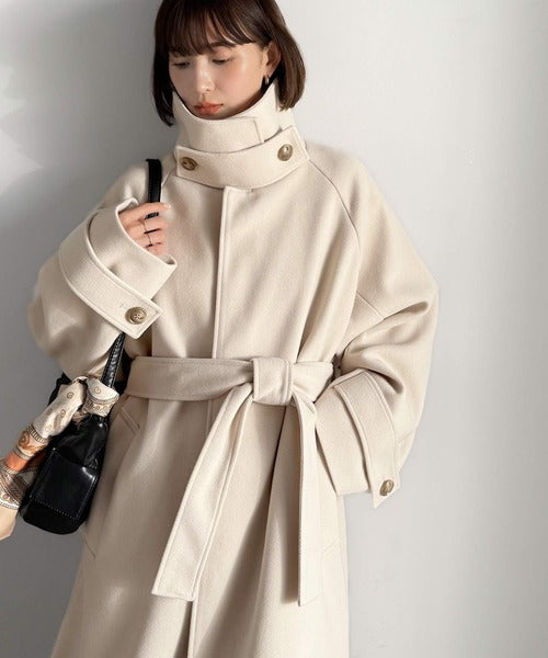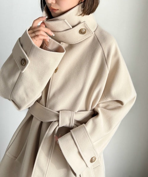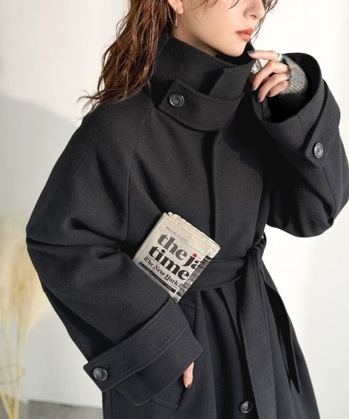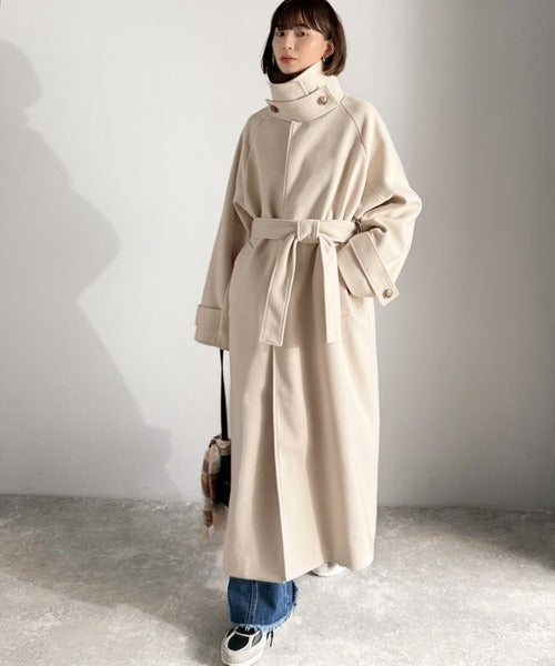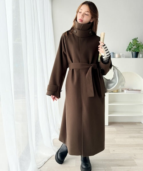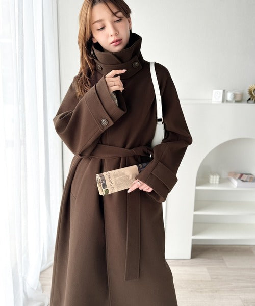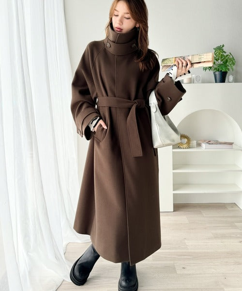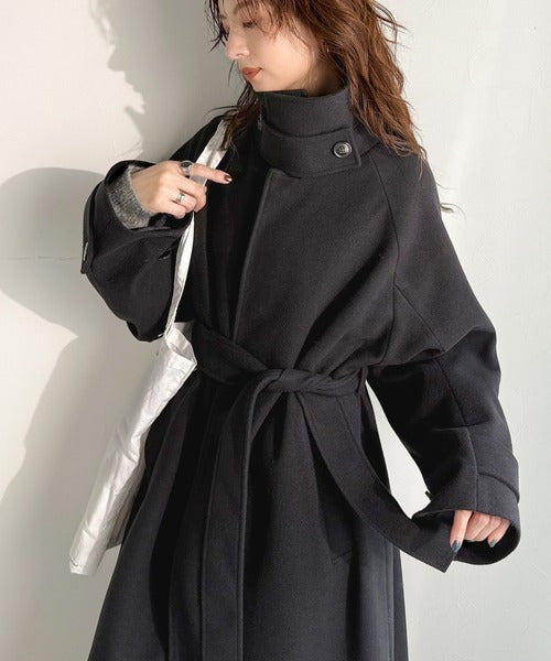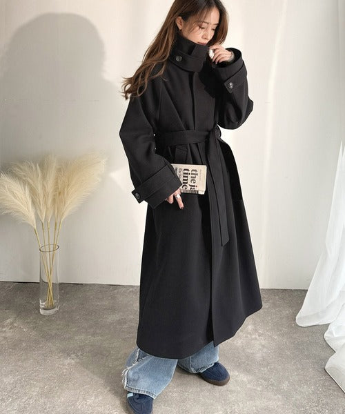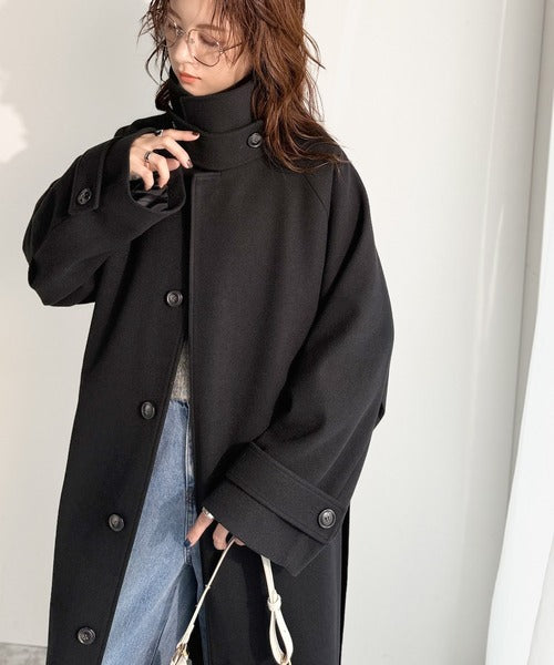 360度上品魅せ。衿2way比翼スタンドウール調ステンカラーコート(ロング丈) ce1070165