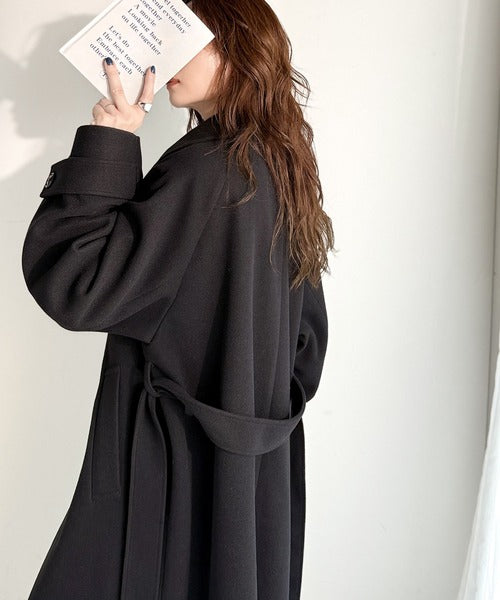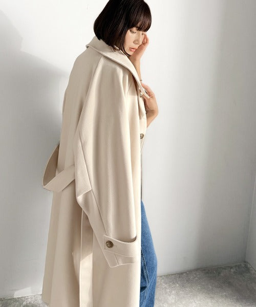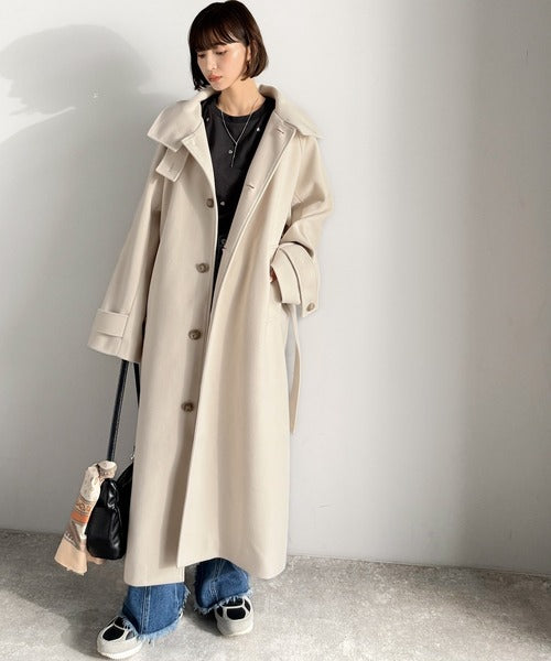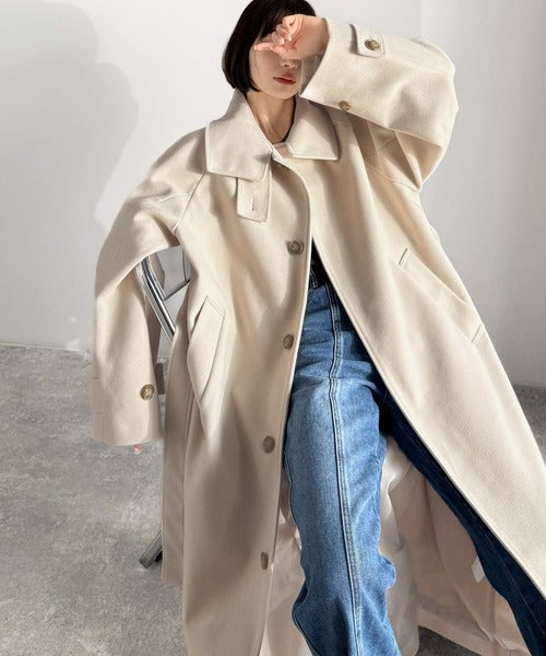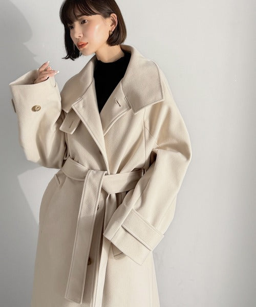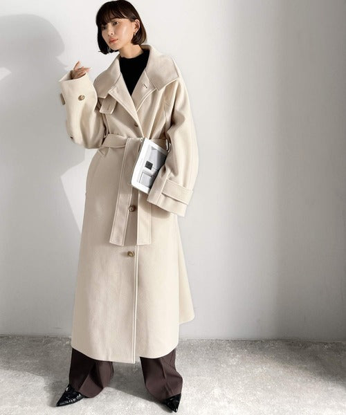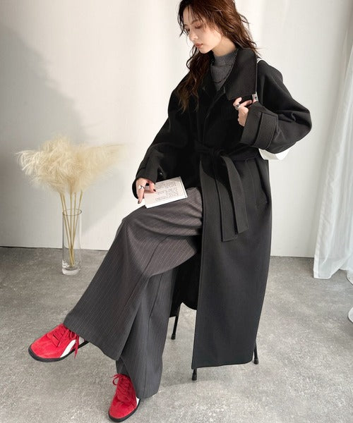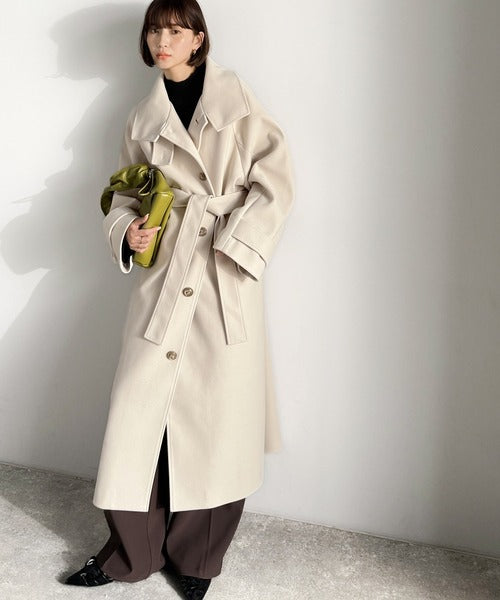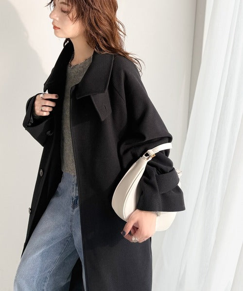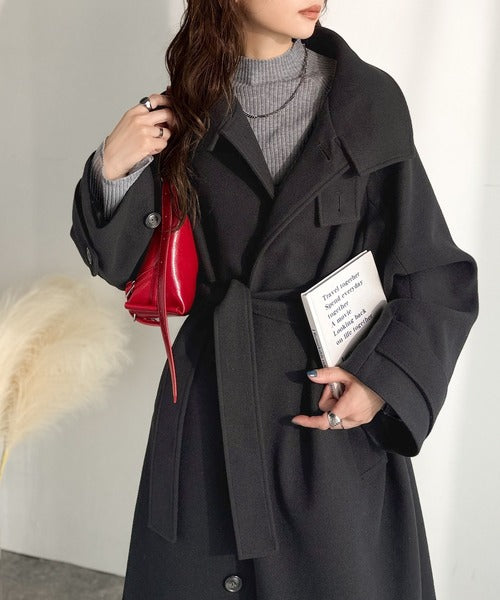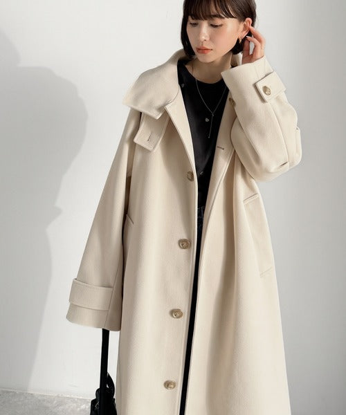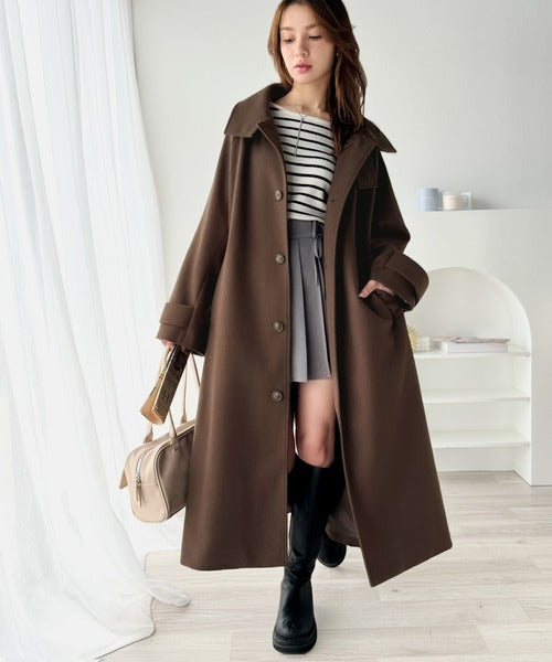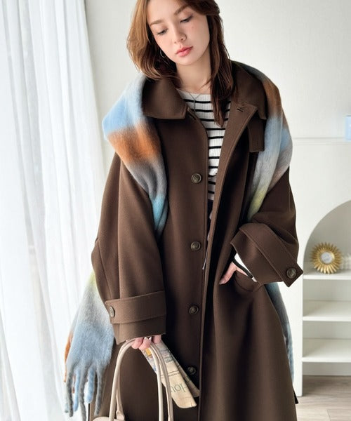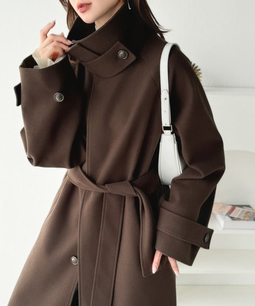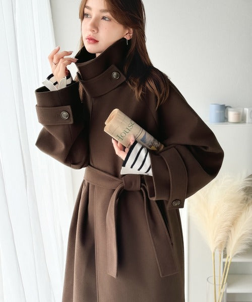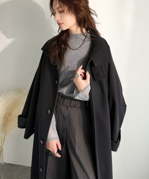 360度上品魅せ。衿2way比翼スタンドウール調ステンカラーコート(ロング丈) ce1070165