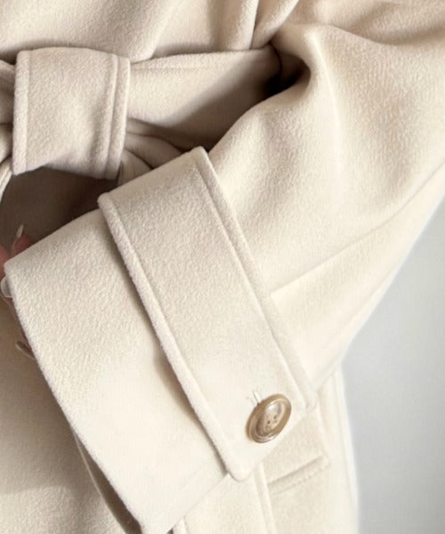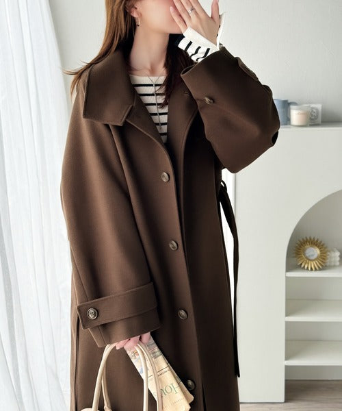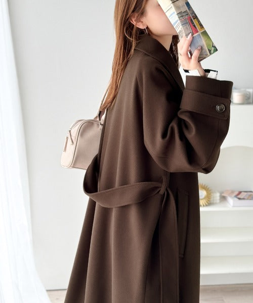ベーシックなデザインながらも1枚で女性らしさを引き立てるこのコートは