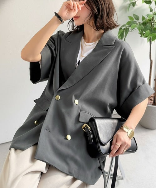 きちんと感も、抜け感も。夏に着られるテーラード。ショートスリーブオーバーサイズジャケット(半袖) ce1265079