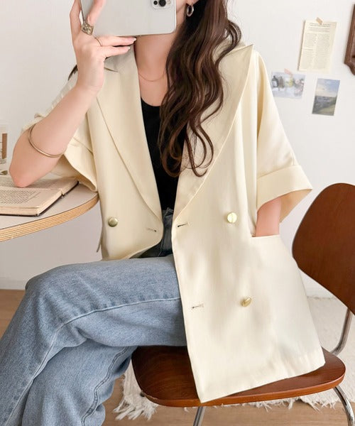 リラクシーで上品見えするショートスリーブジャケット。