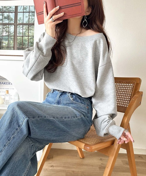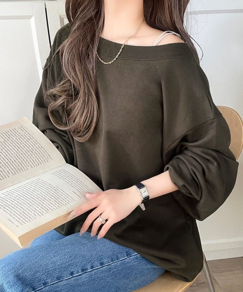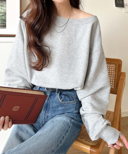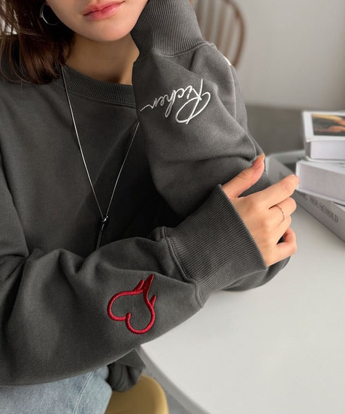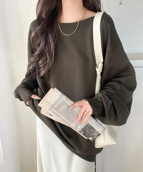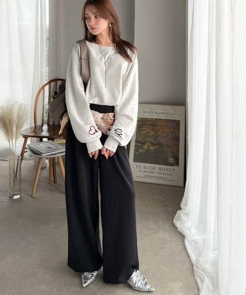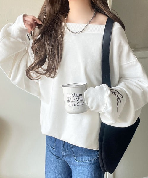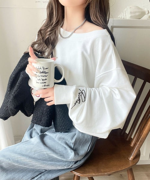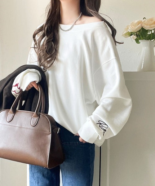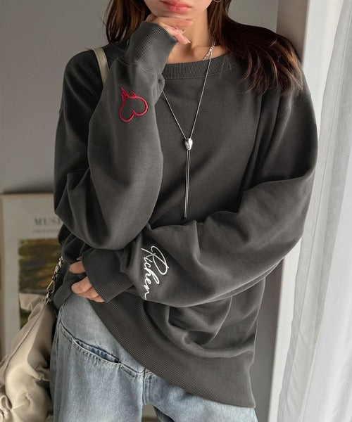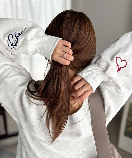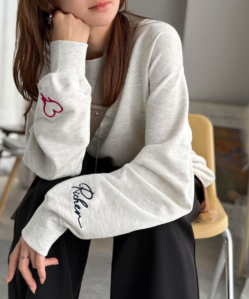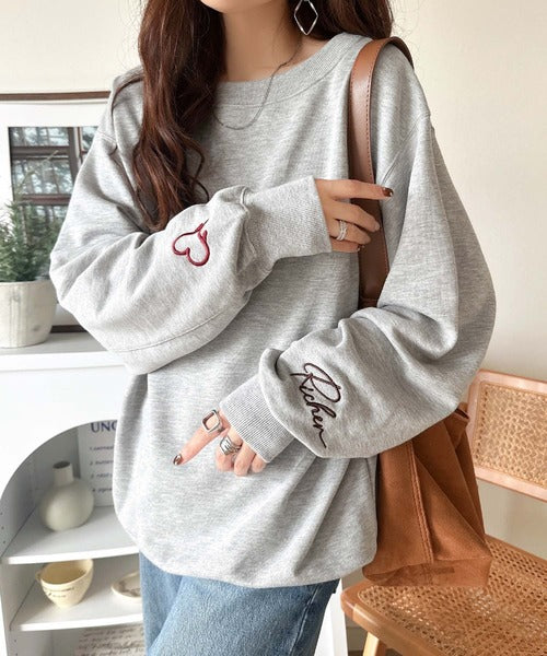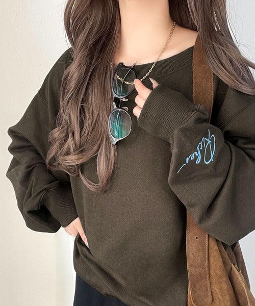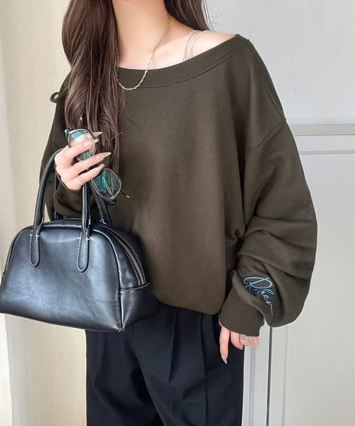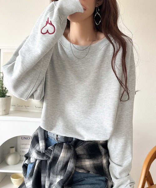 こなれた主役級の存在感♪袖ハート&手書き風ロゴ刺繍裏毛オフショルオーバーサイズスウェット(長袖) ce1330045