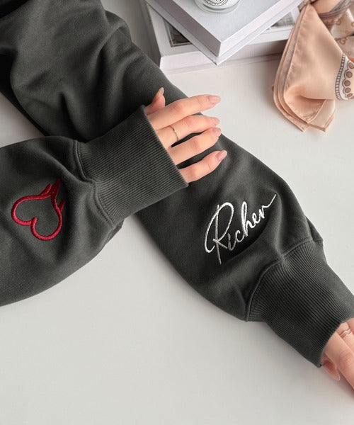左袖には「Richer」の手書き風刺繍でスタイリッシュなアクセント◎