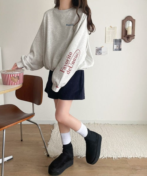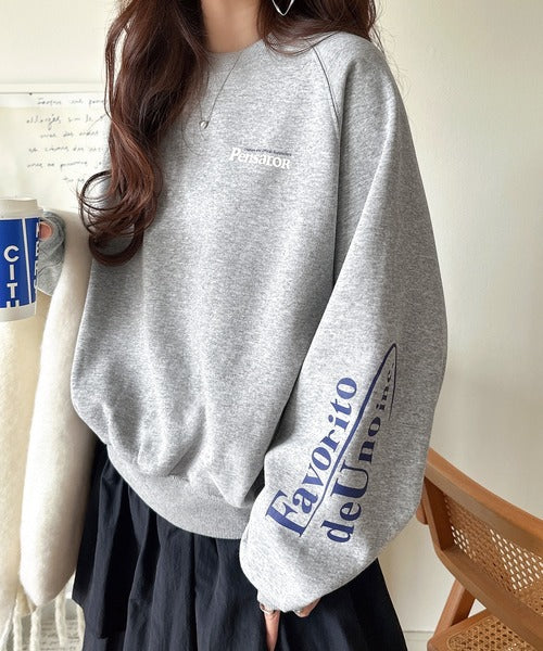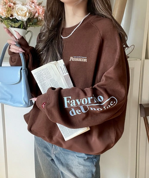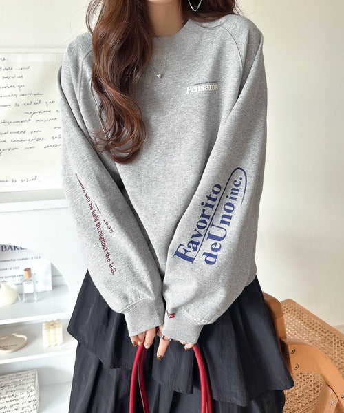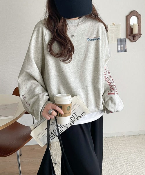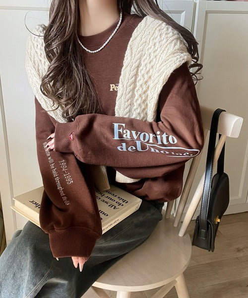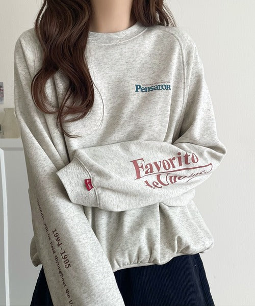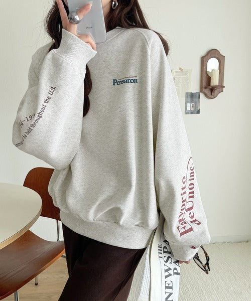 お洒落に配置されたロゴテキストが魅力の裏起毛プルオーバー♪