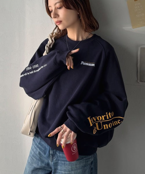 《Javaジャバコラボ》抜け感纏い、センスで遊ぶ。ロゴ袖刺繍&グラフィック裏起毛プルオーバー jv1050328