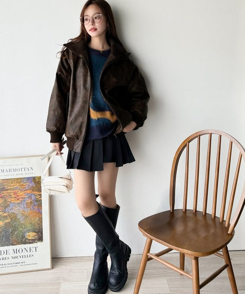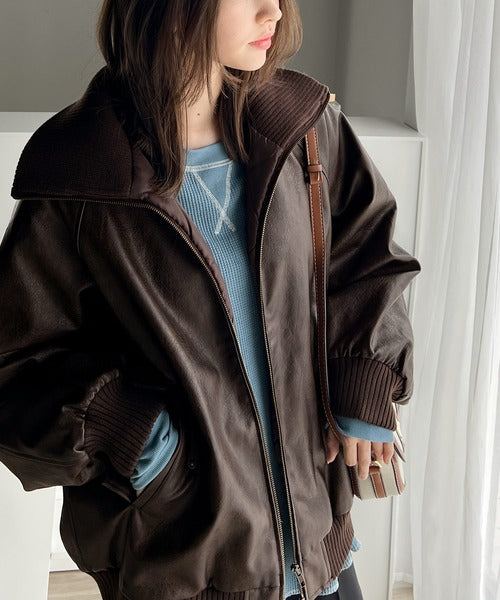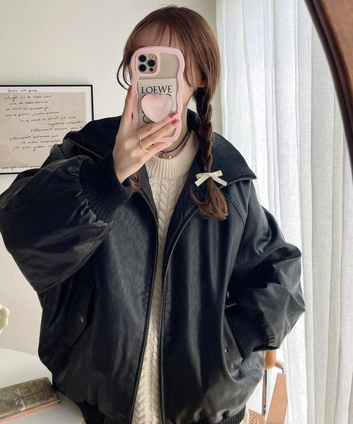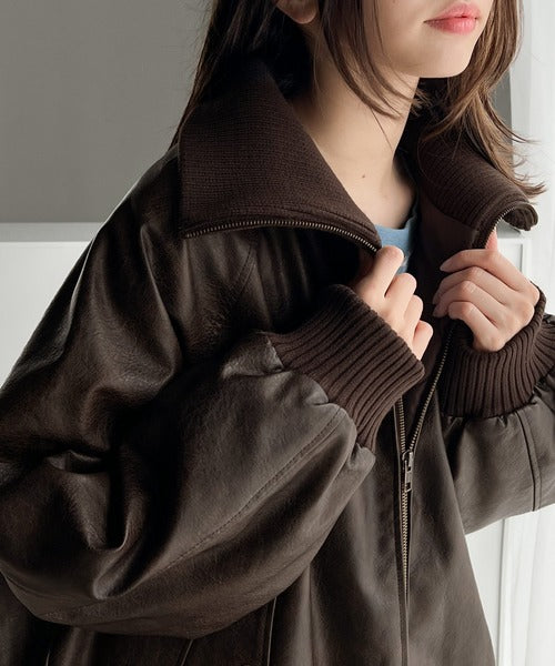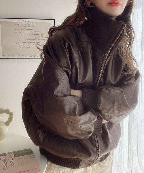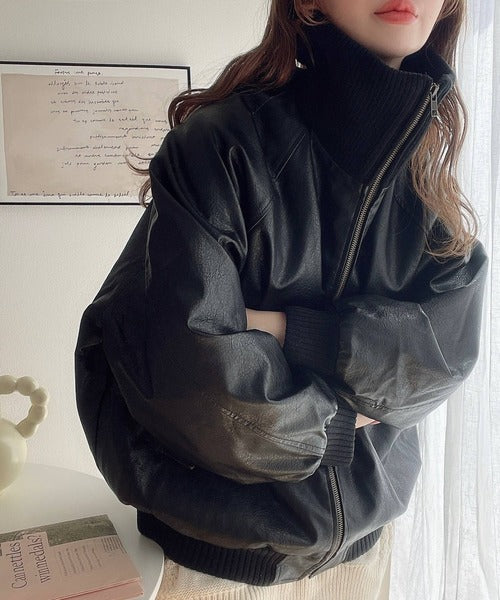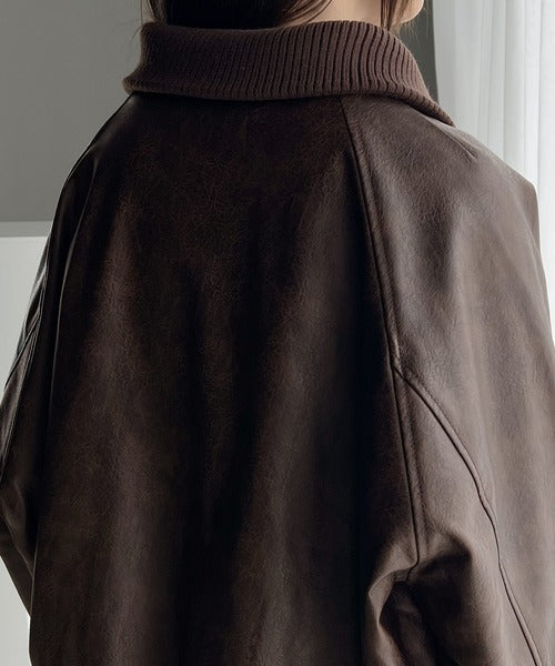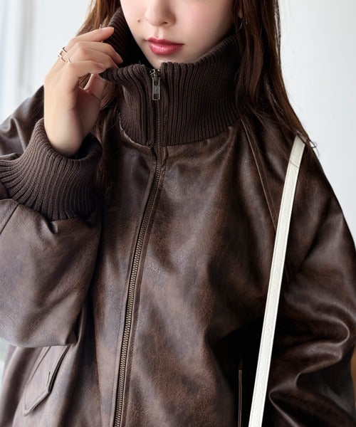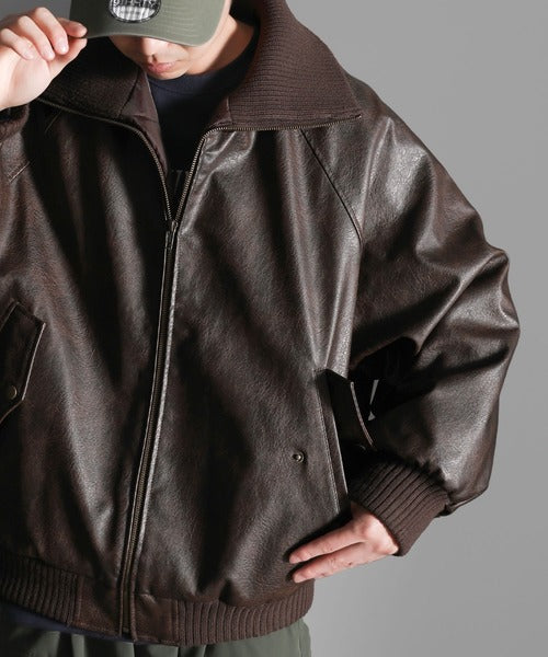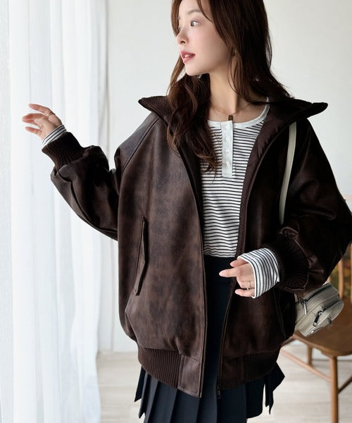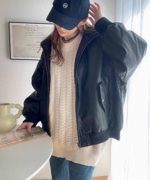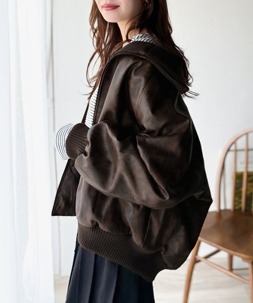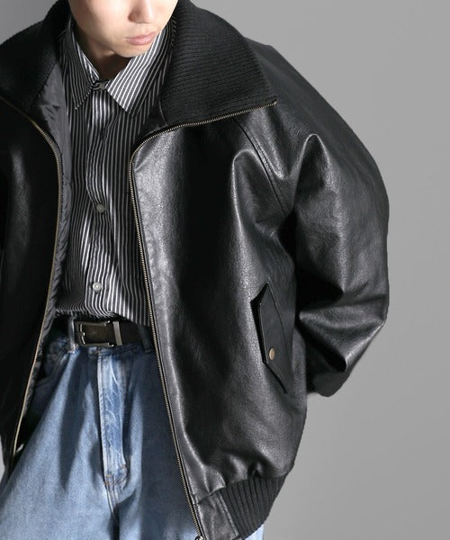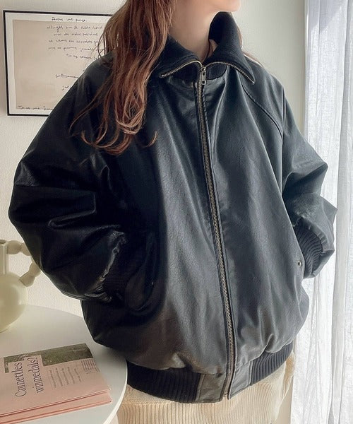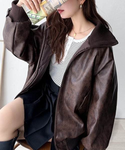 トレンドの古着にあるようなオーバーサイズのフェイクレザーブルゾン。
