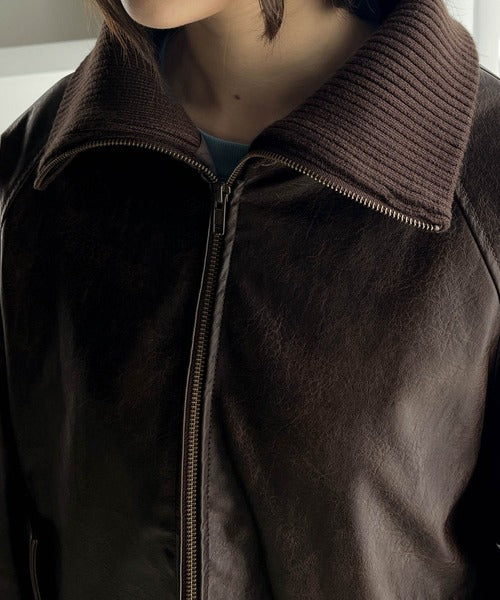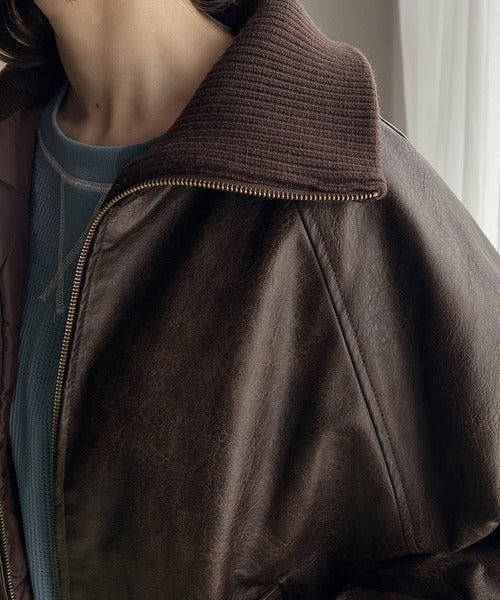 《Javaジャバコラボ》質感に一目惚れ。リブタートル フェイクレザージャケット jv1070055