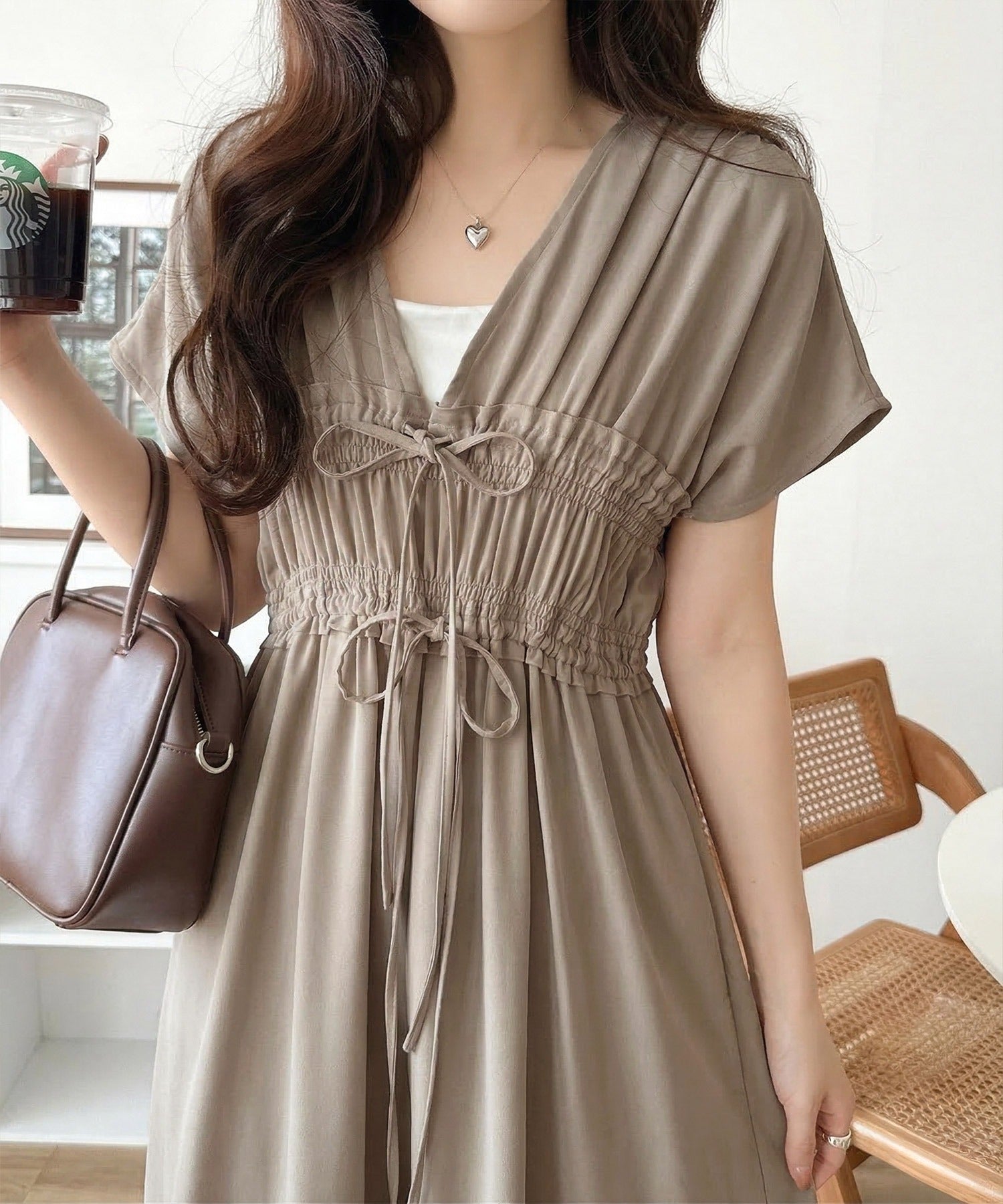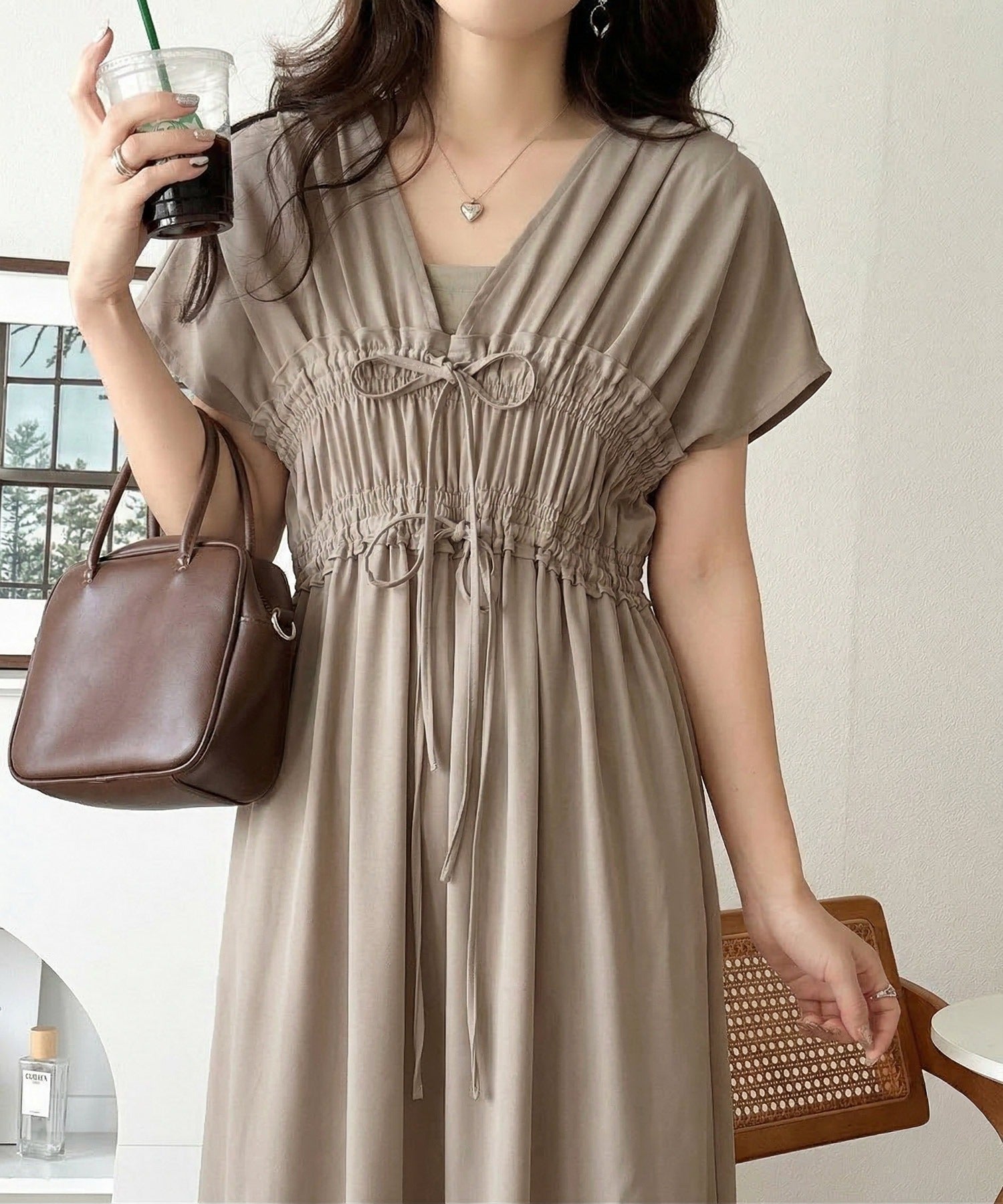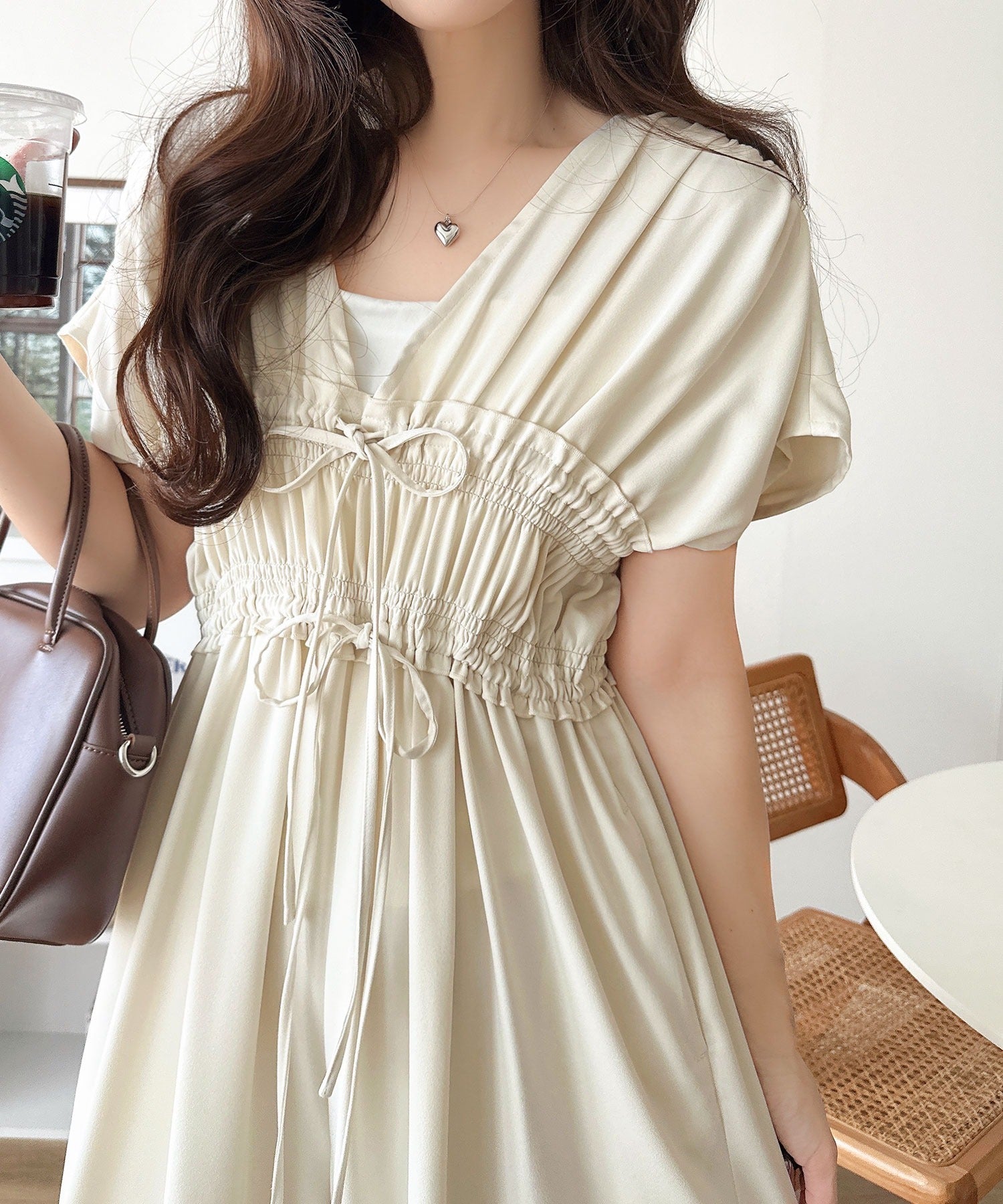 繊細なシャーリングやリボンを施した洗練デザイン。