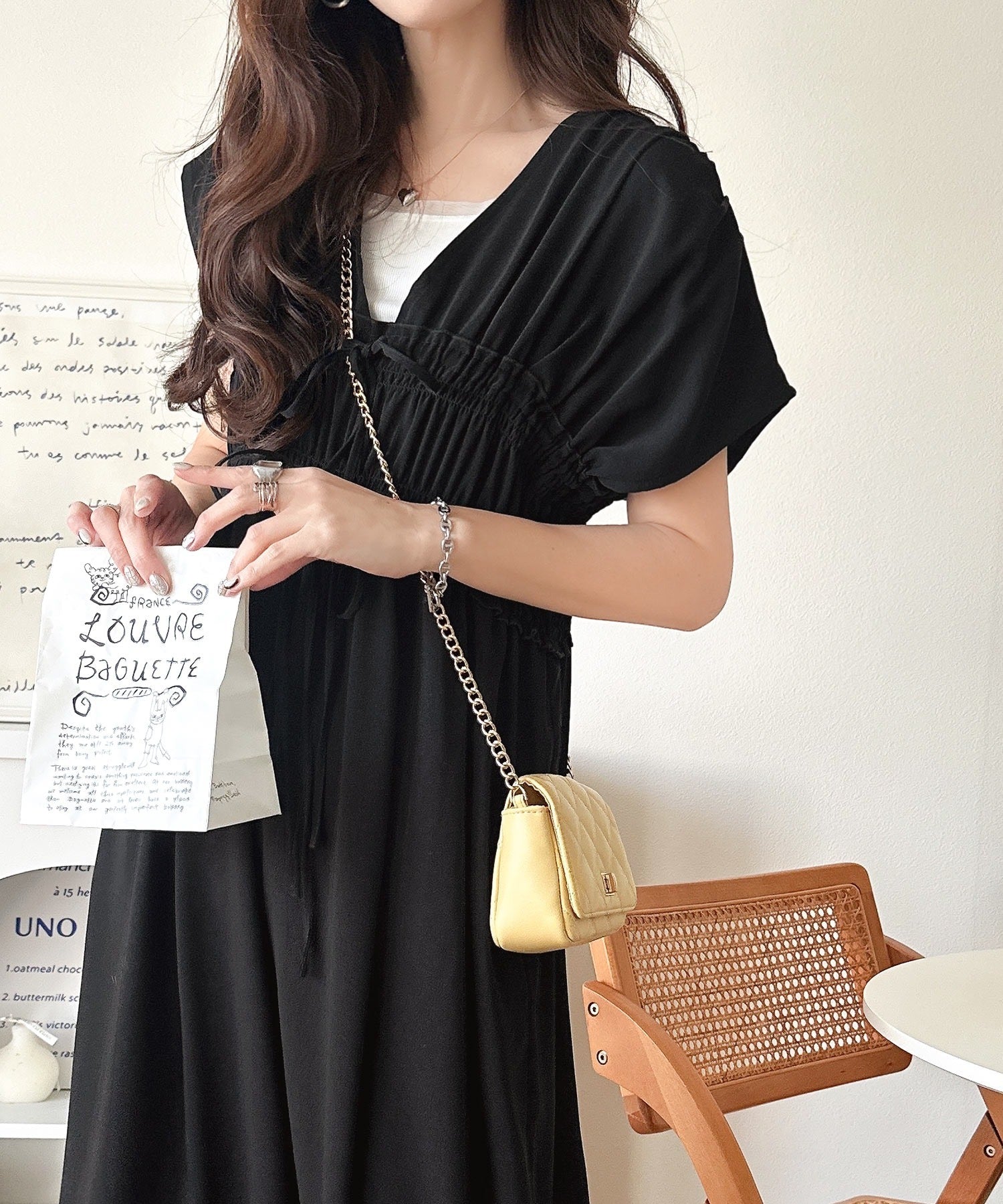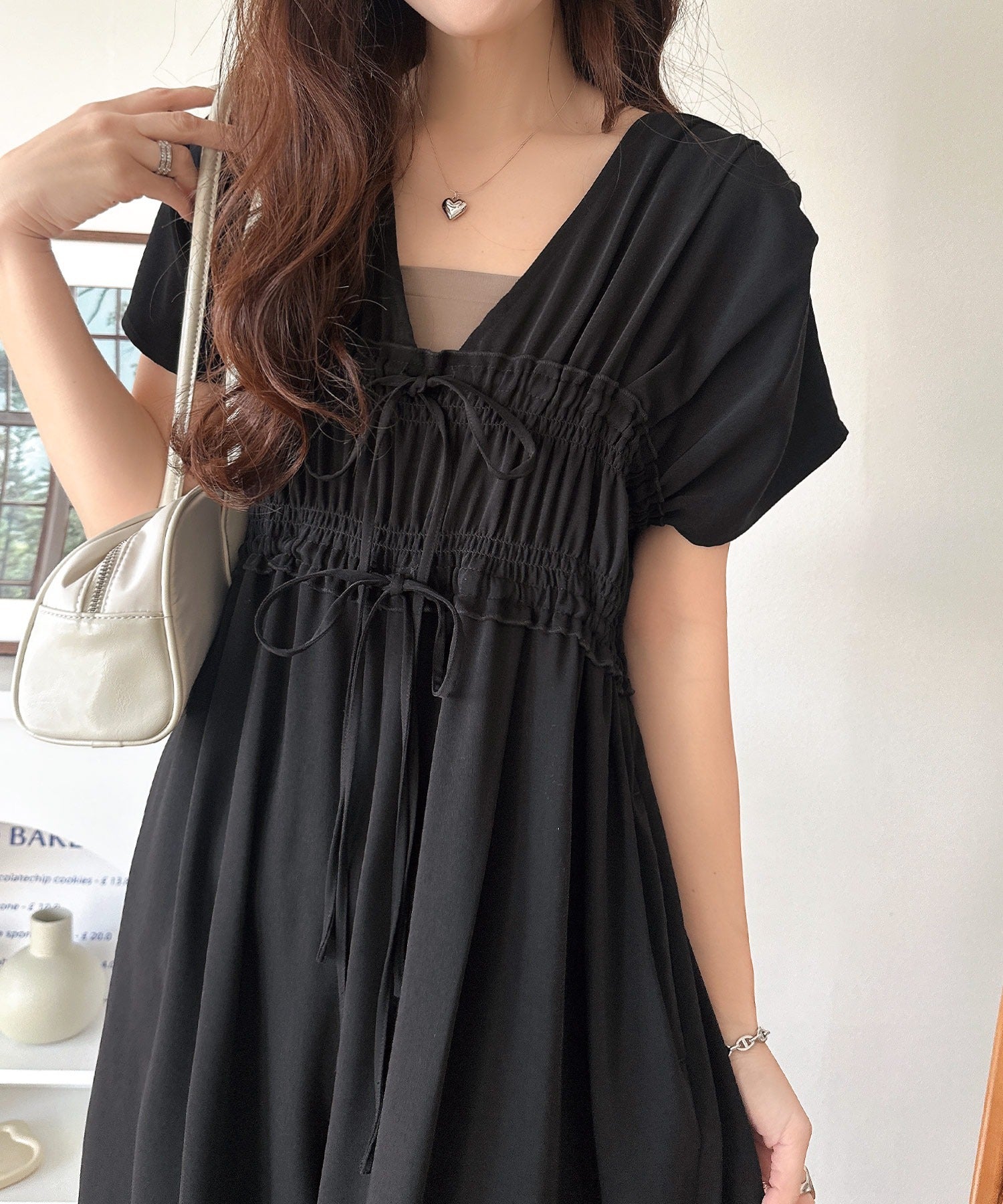 華奢なフリルとシャーリング、