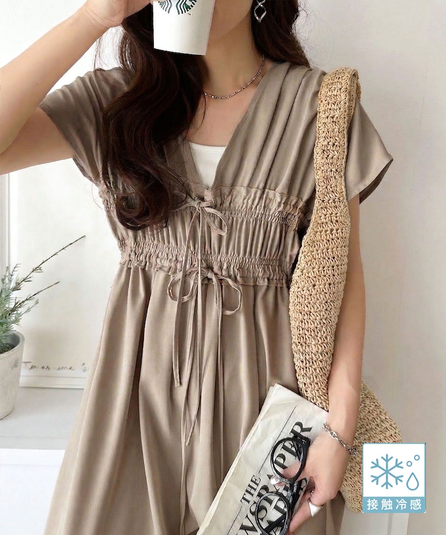 接触冷感素材で、暑い日もひんやり快適な着心地。