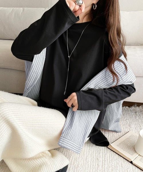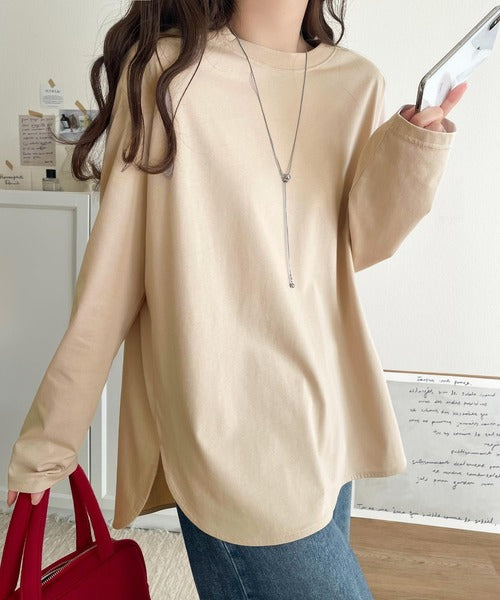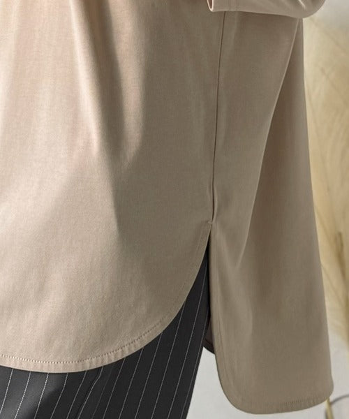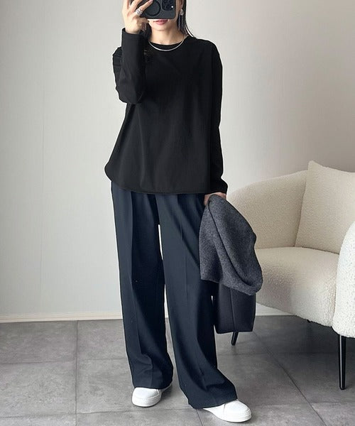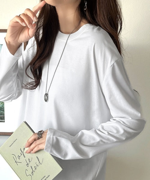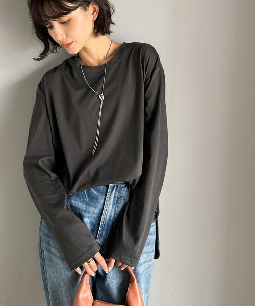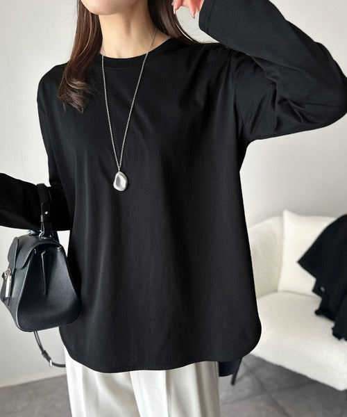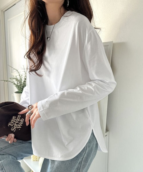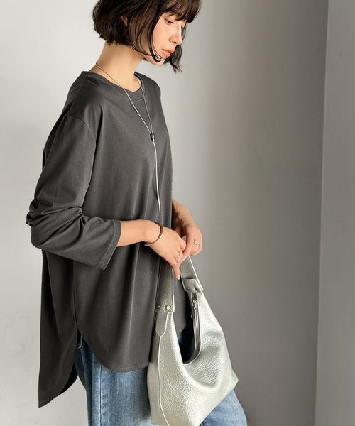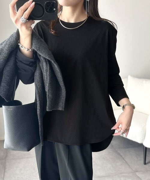 品よく、楽ちん。大人の余裕が漂う。シルケット素材 レイヤード ラウンドヘム 長袖 ロンTEE ce1020296