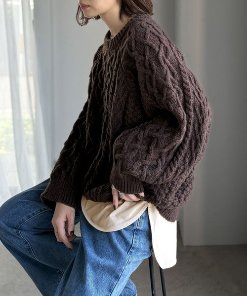 ニットやカーディガンのインナーとしてラウンドヘムをチラ見せするだけで、旬なレイヤードスタイルに♪