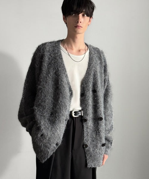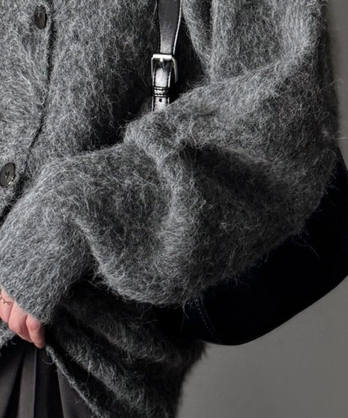 「Mixed Shaggy Double-Tailored Knit Cardigan/