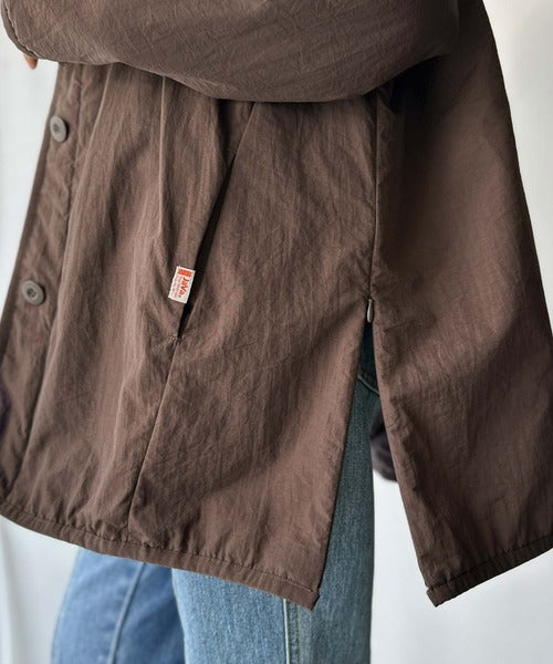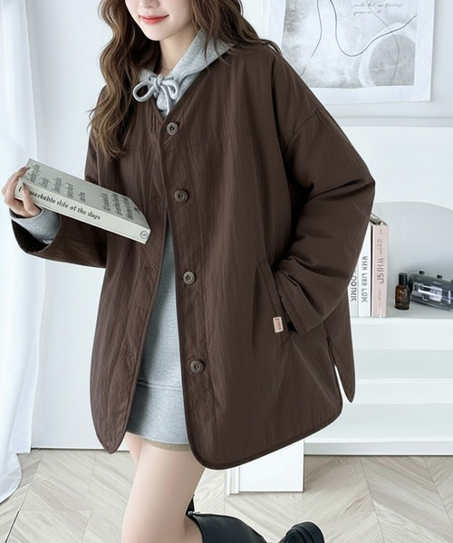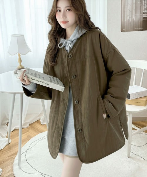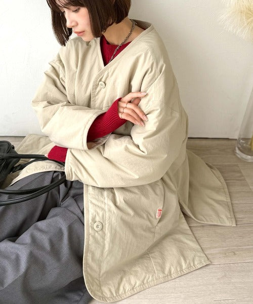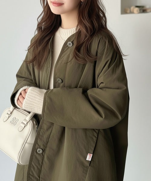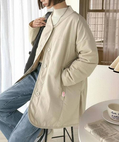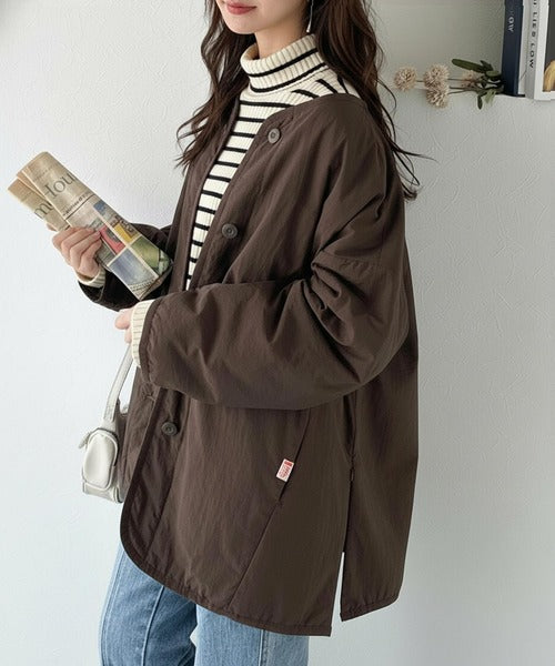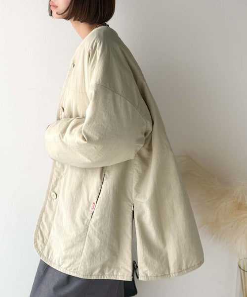 《JaVaジャバコラボ》1枚で今っぽい抜け感アウター。ノーカラーサイドファスナー中綿ジャケット jv1265013