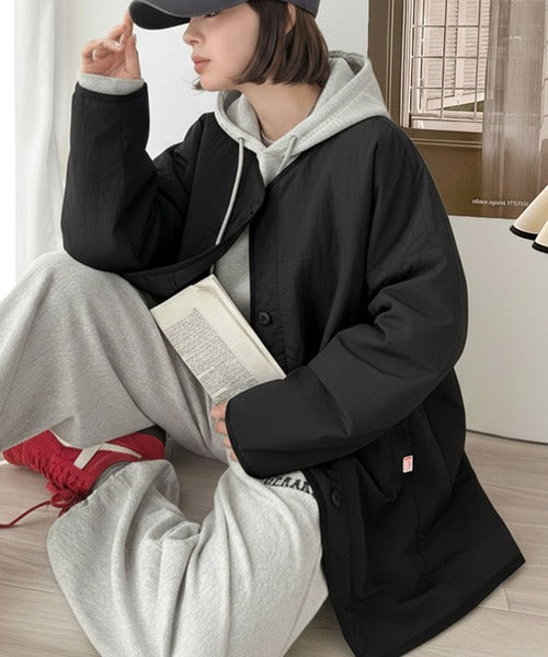 ゆったりとしたオーバーサイズながらも着膨れせず、中綿入りでしっかり暖かいので、ロングシーズン活躍してくれる1着です。